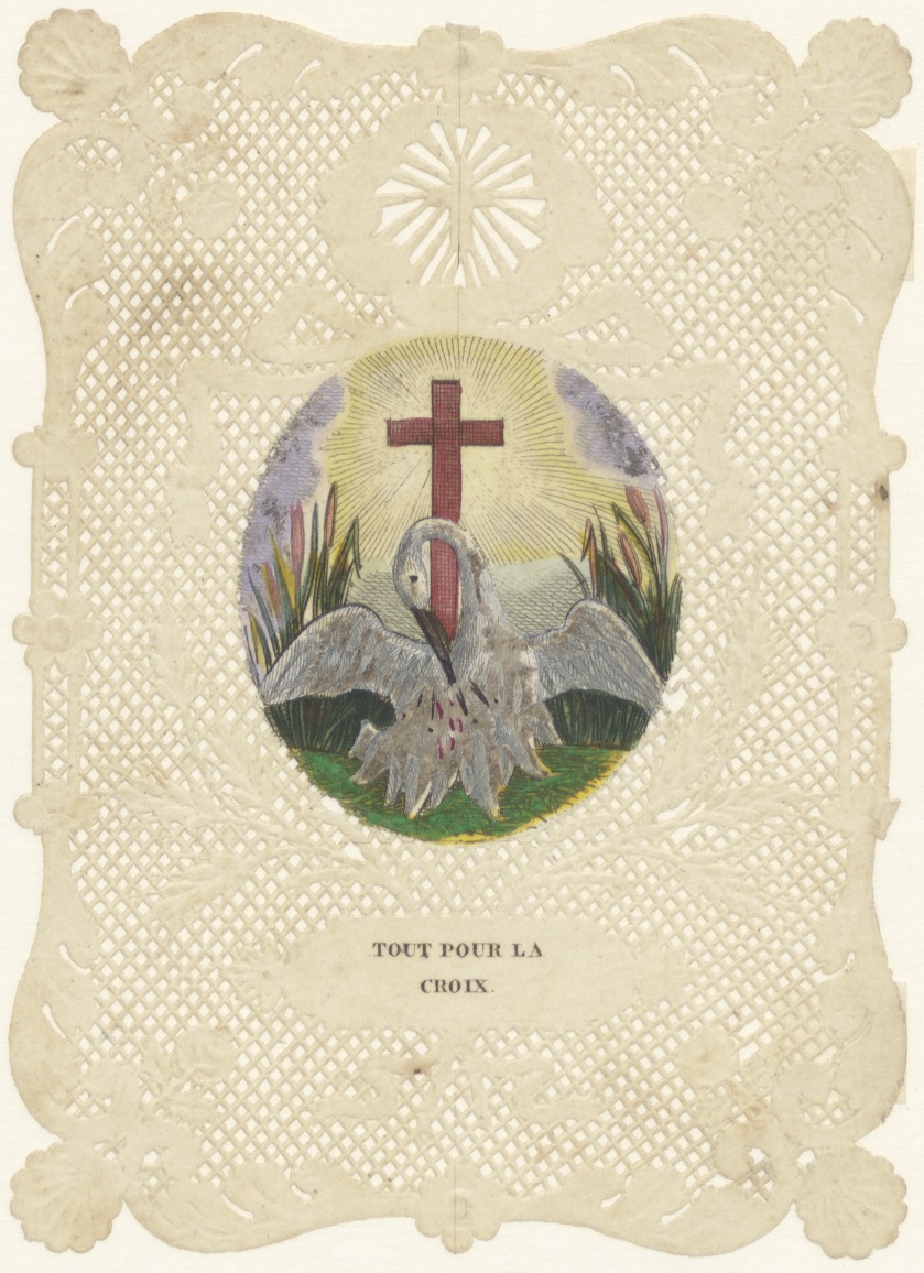 Alles voor het kruis; kruis met zwaan (Frans), ingekleurd, kz. Jacobs