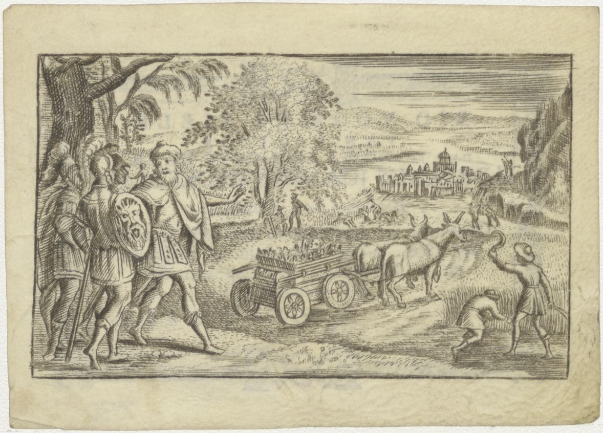 Ossenkar op weg naar stad met soldaten, ark, kz. religieus, Adrianus Breekman (+1800) bisschop van Haarlem, Amsterdam