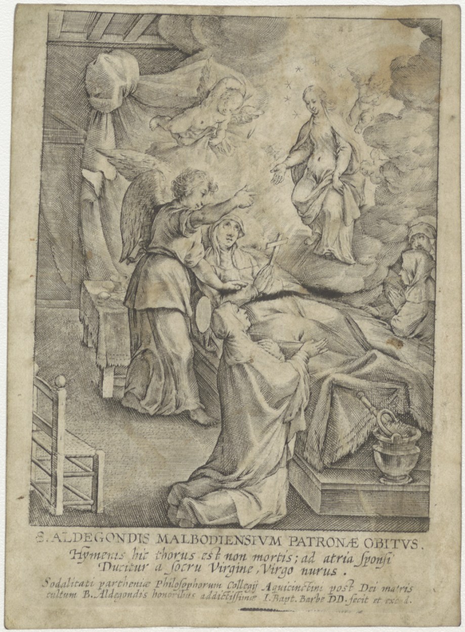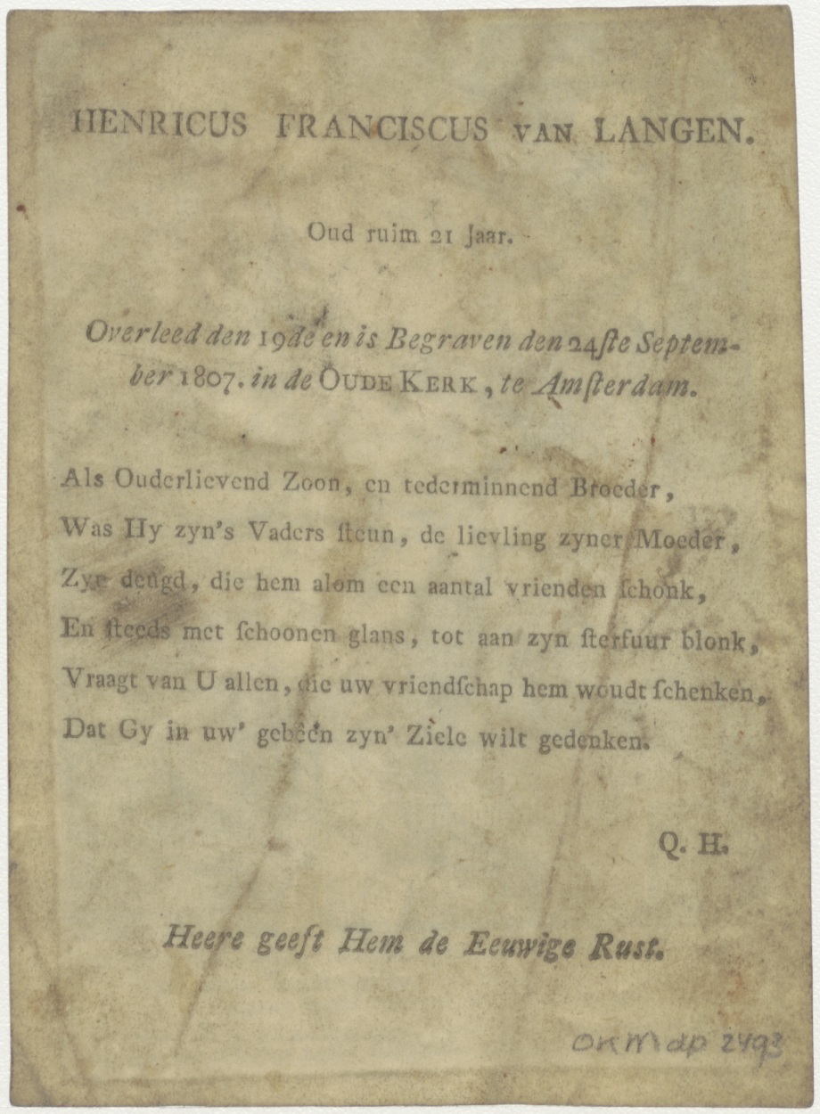 Sterfbed van H. Aldegondis, kz. Bid voor ziel Henricus Franciscus van Langen (+1807);Oude Kerk;Amsterdam;