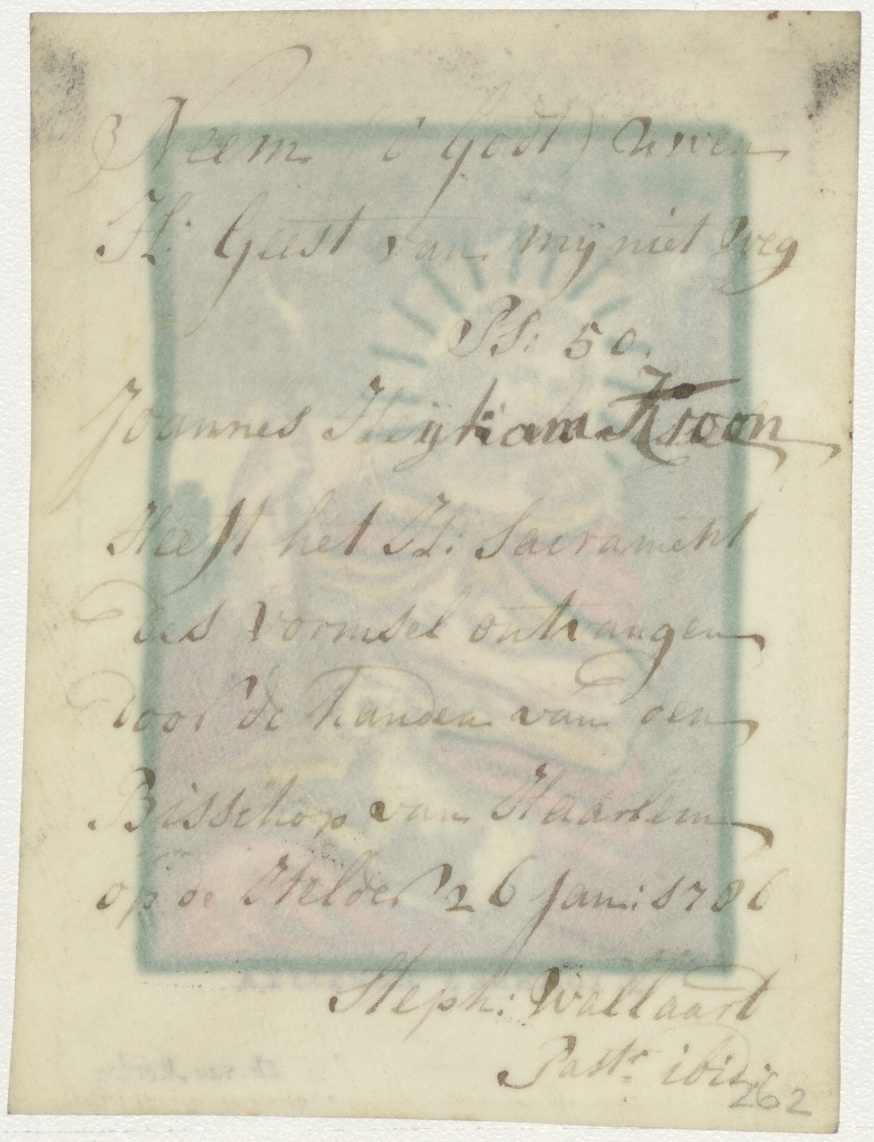 H. Joannes (Johannes) Baptista, ingekleurd, kz. Vormsel Joannes Heijkam Kroon(1786) door bisschop(?) van Haarlem