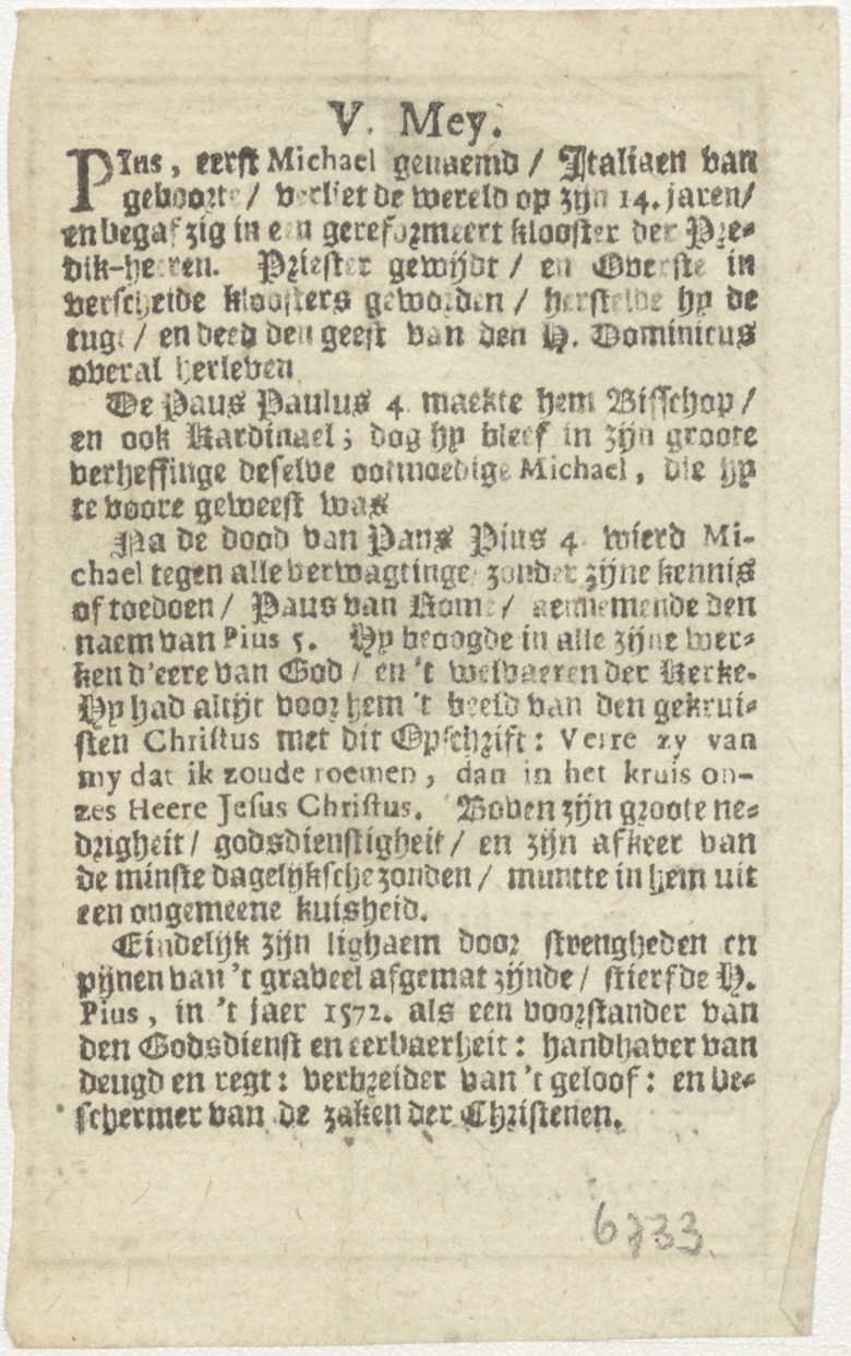 H. Pius V (+1572), kz. Nieuwenhuysen; levenschrijving