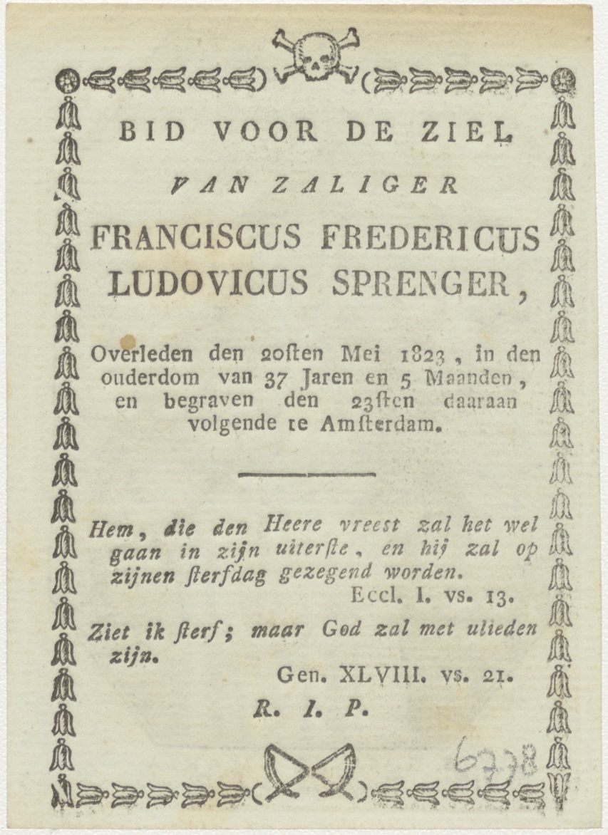 H. Rosa van de H. Maria/van Lima, kz. Bid voor ziel Sprenger (+1823) Amsterdam