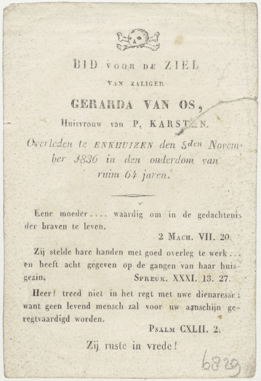 H. Simon, apostel, kz. Bid voor ziel Karsten-van Os (+1836) Enkhuizen