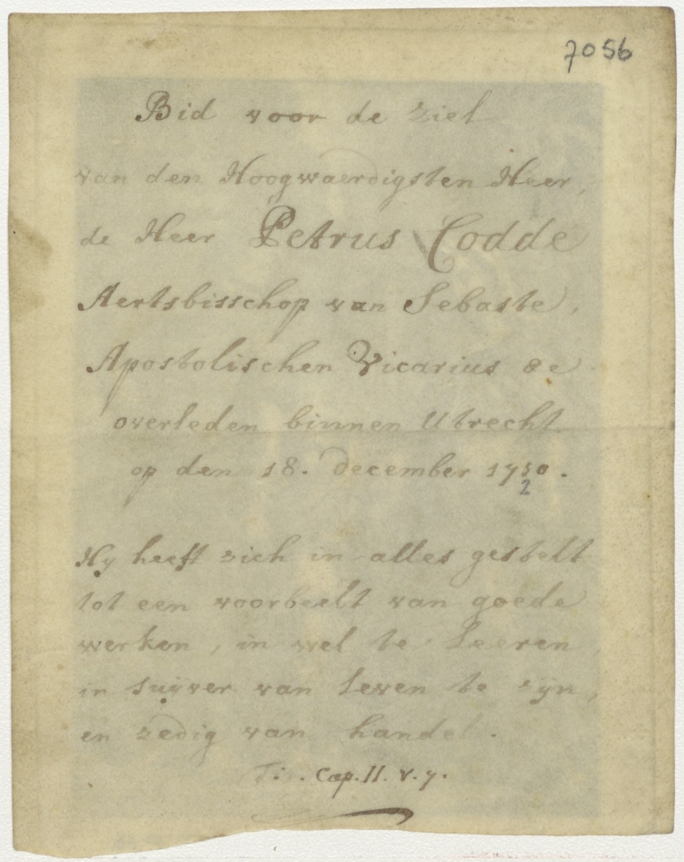H. Familie, kz. Religieus; bid voor ziel Petrus Codde (+1710), aartsbisschop van Sebaste, Utrecht