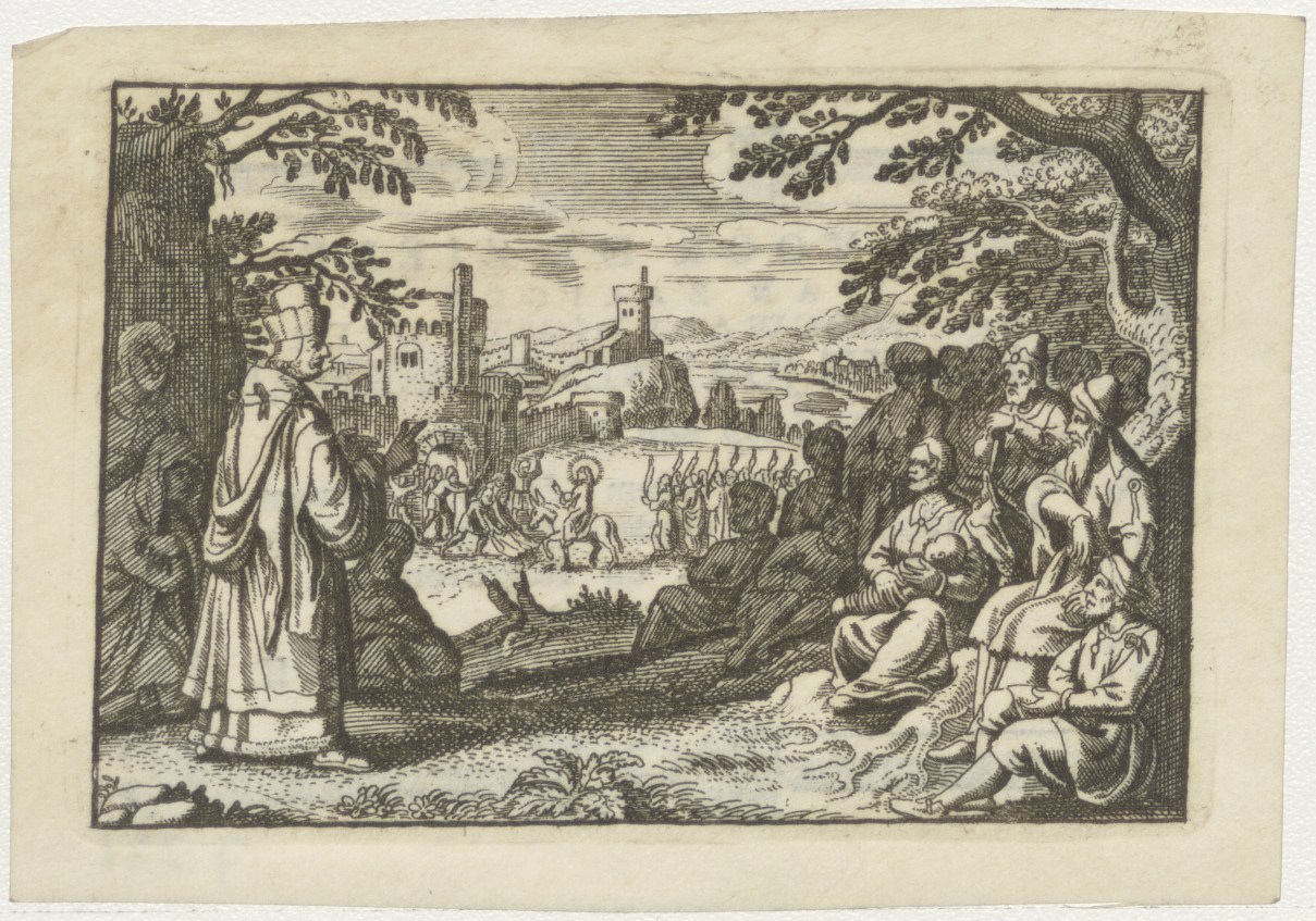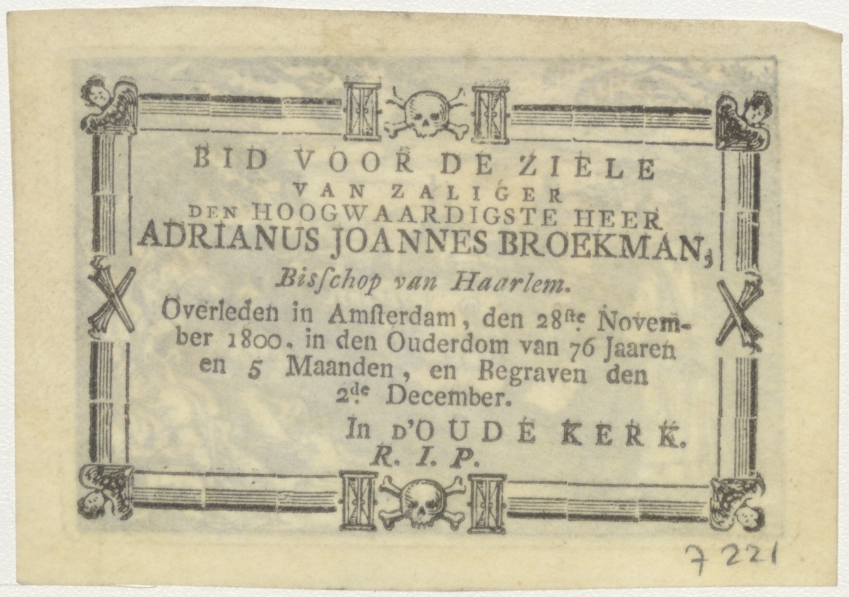Palmzondag, intocht van Christus in Jeruzalem, kz. Religieus bid voor ziel Adrianus Broekman (+1800) Bisschop van Haarlem, overleden te Amsterdam