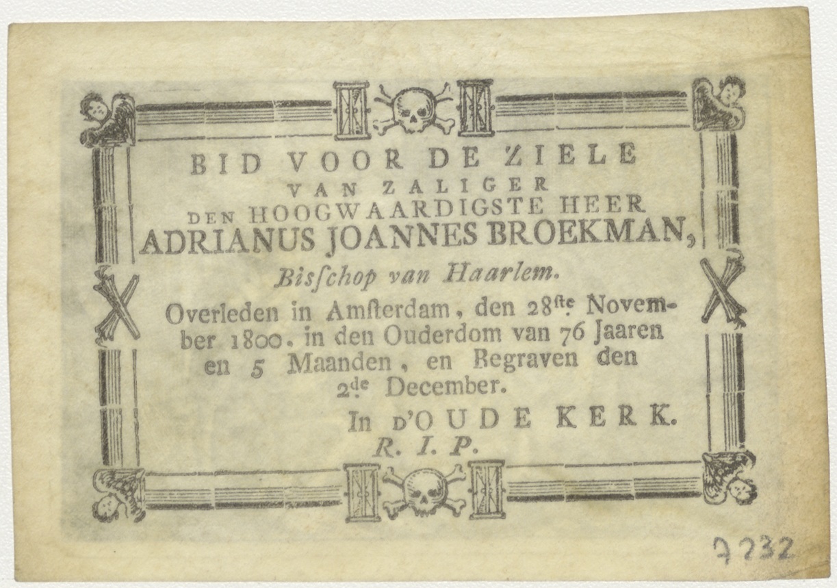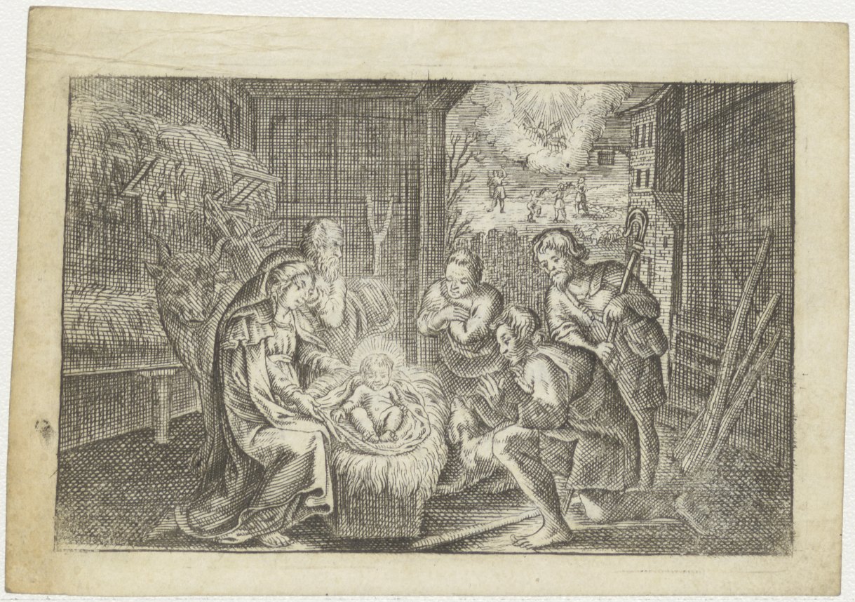 Aanbidding der herders, kz. Religieus bid voor ziel Adrianus Broekman (+1800) Bisschop van Haarlem, overleden te Amsterdam