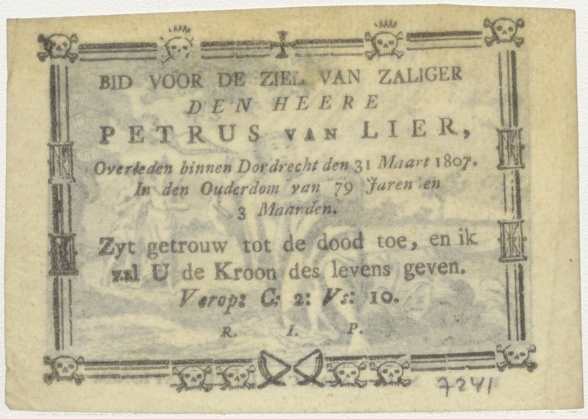 Lijdt ons niet in bekoring... deel Onze Vader, kz. Bid voor ziel Van Lier (+1807) Dordrecht