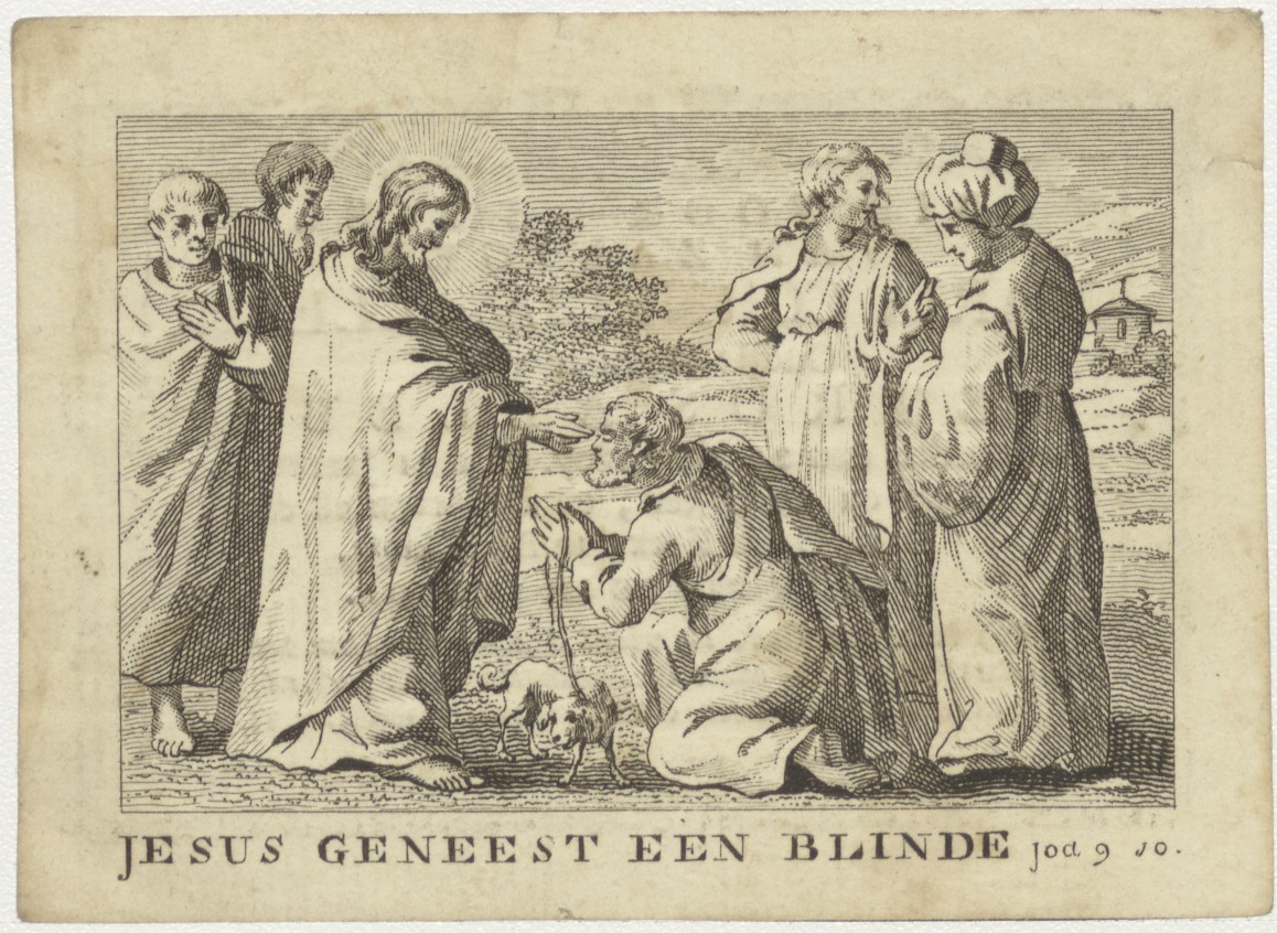 Wonder van Christus: Jesus geneest de blinde (Joh. 9), kz. Bid voor ziel Allebé (+1807) Amsterdam
