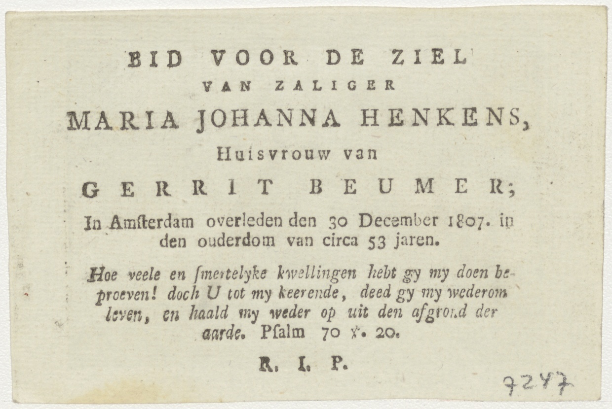 Berg Calvarie met drie kruisen, kz. Bid voor ziel Henkens-Beumer (+1807) Amsterdam