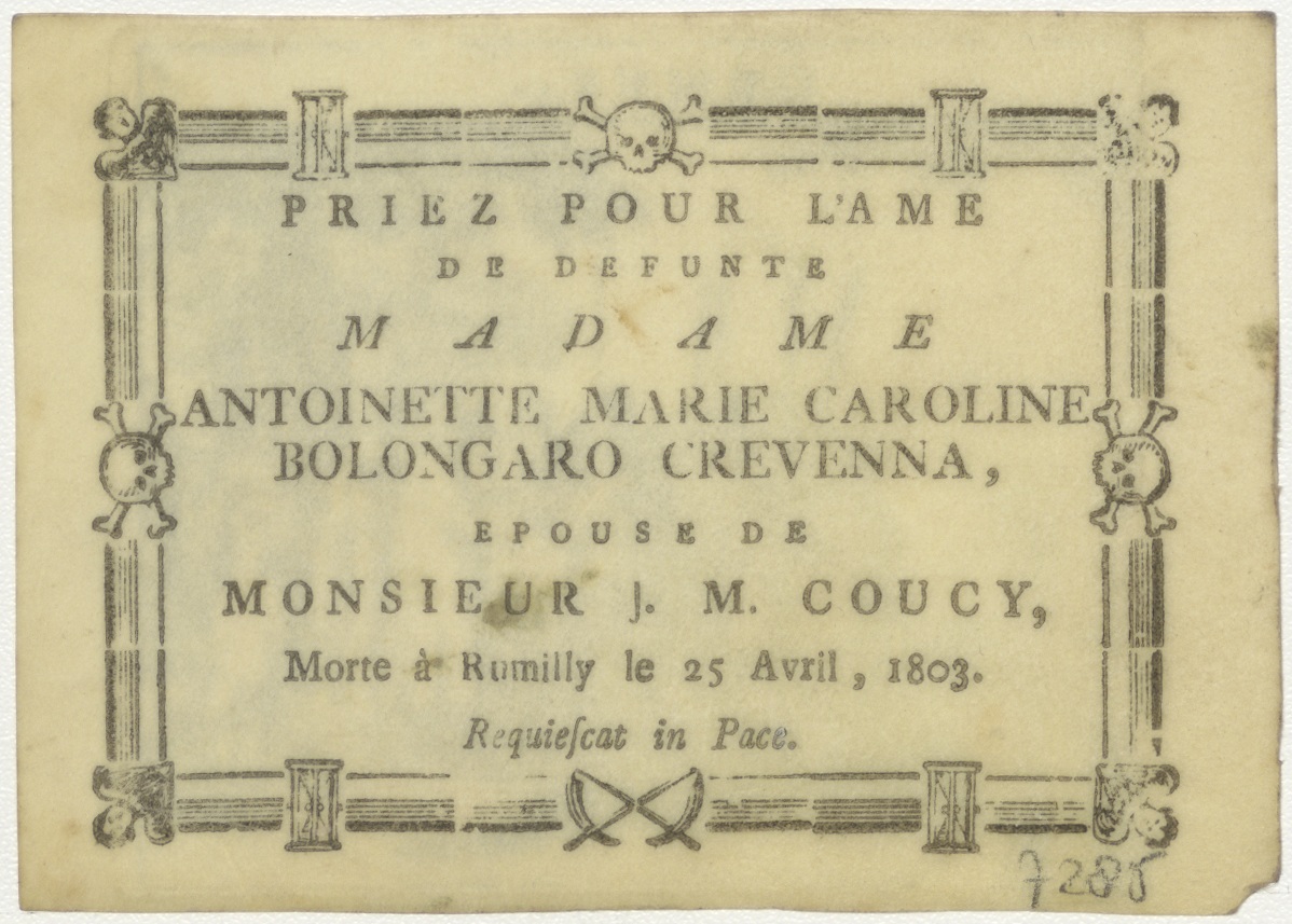 Jozef aan Egypte verkocht, kz. Bid voor ziel Bolongaro Erevenna-Coucy (+1803) Rumilly (Frans)