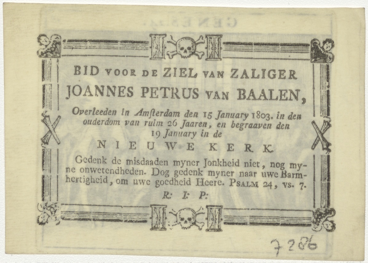 Isaaks huwelijk met Rebekka, kz. Bid voor ziel Van Baalen (+1803) Amsterdam