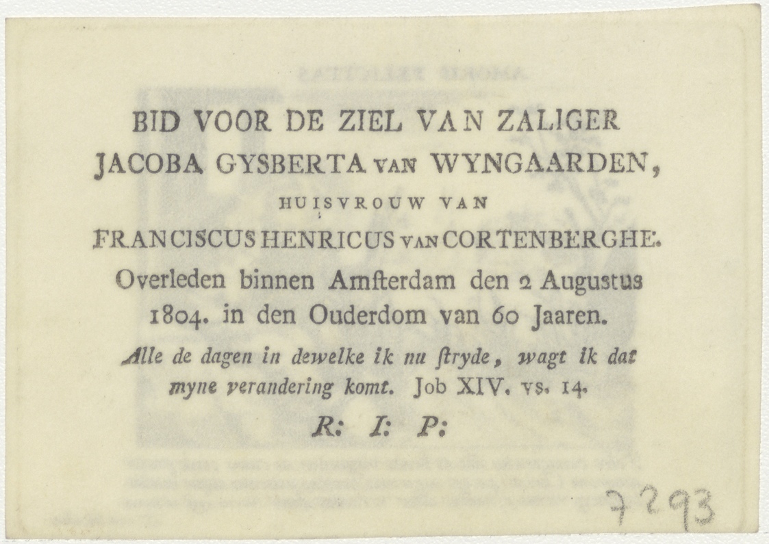 Amor divinus en Anima, amoris felicitas, kz. Bid voor ziel Cortenberghe-Wijngaarden (+1804) Amsterdam