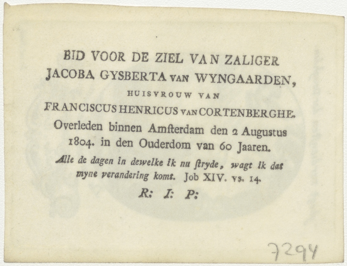 H. Geest (serie): fructus moiestia (18), met H. Theresia, kz. Bid voor ziel Cortenberghe-Wijngaarden (+1804) Amsterdam