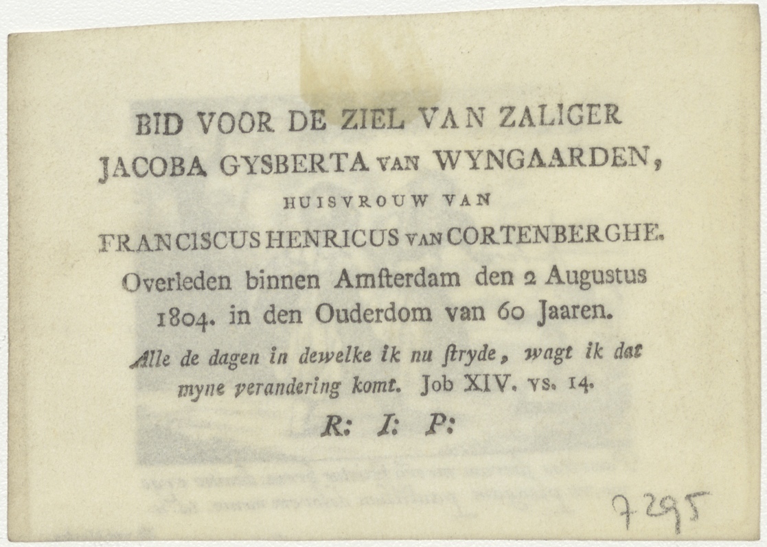 Amor en Anima met zonnewijzer, kz. Bid voor ziel Cortenberghe-Wijngaarden (+1804) Amsterdam