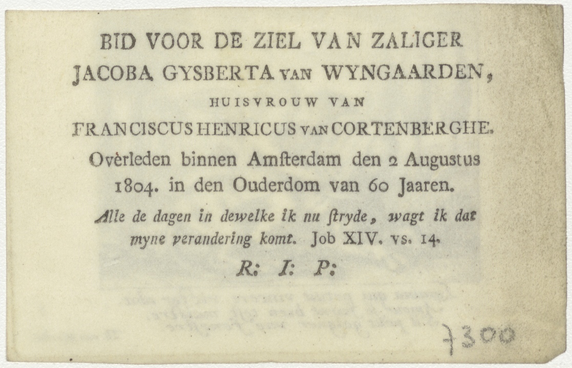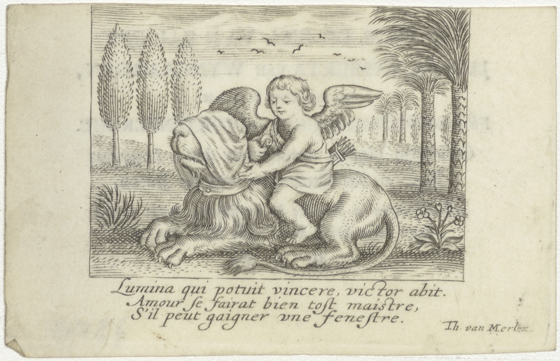 Amor gezeten op een leeuw, kz. Bid voor ziel Van Wijngaarden-van Cortenberghe (+1804) Amsterdam