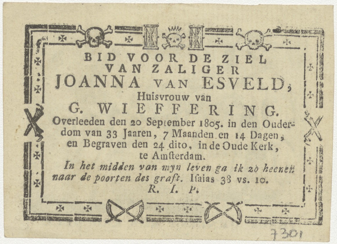 Christus geneest de lamme (Math. 11), kz. Bid voor ziel Esveld-Wieffering (+1805) Amsterdam