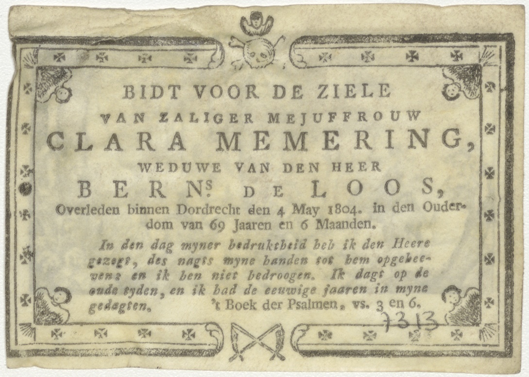 H. Familie, rust op de vlucht naar Egypte, kz. Bid voor ziel Memering-de Loos (+1804) Dordrecht