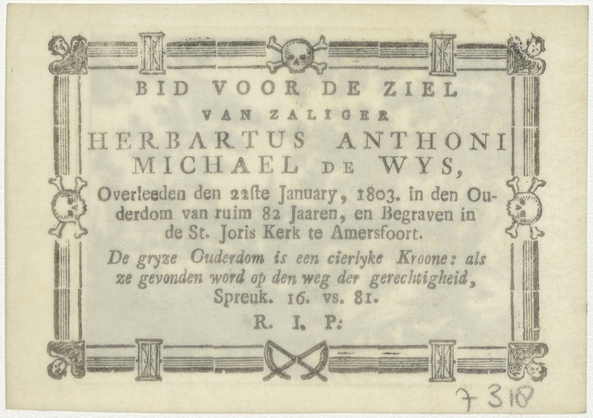 H. Joannes, kz. Bid voor ziel Michael de Wijs (+1803) Amersfoort