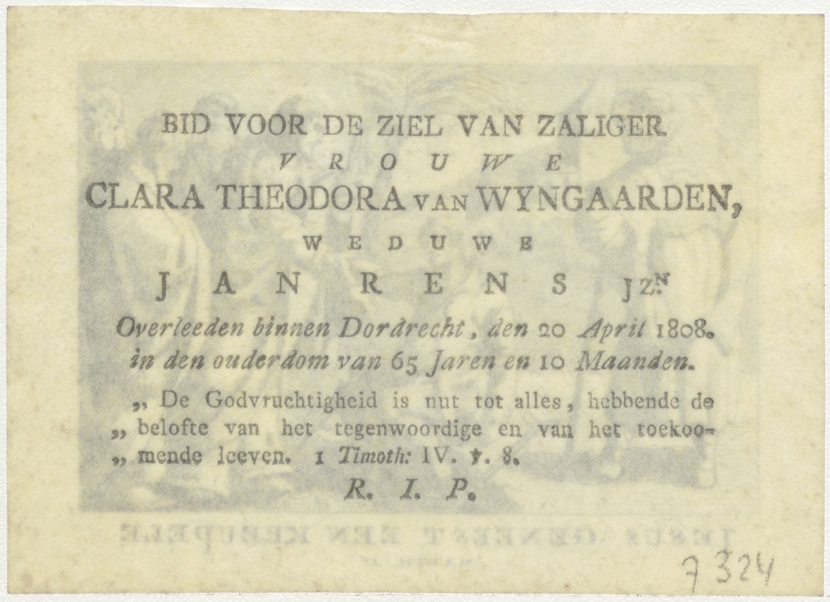 Wonder van Christus, Christus geneest een lamme (Math. 11), kz. Bid voor ziel Rens-van Wijngaarden (+1808) Dordrecht