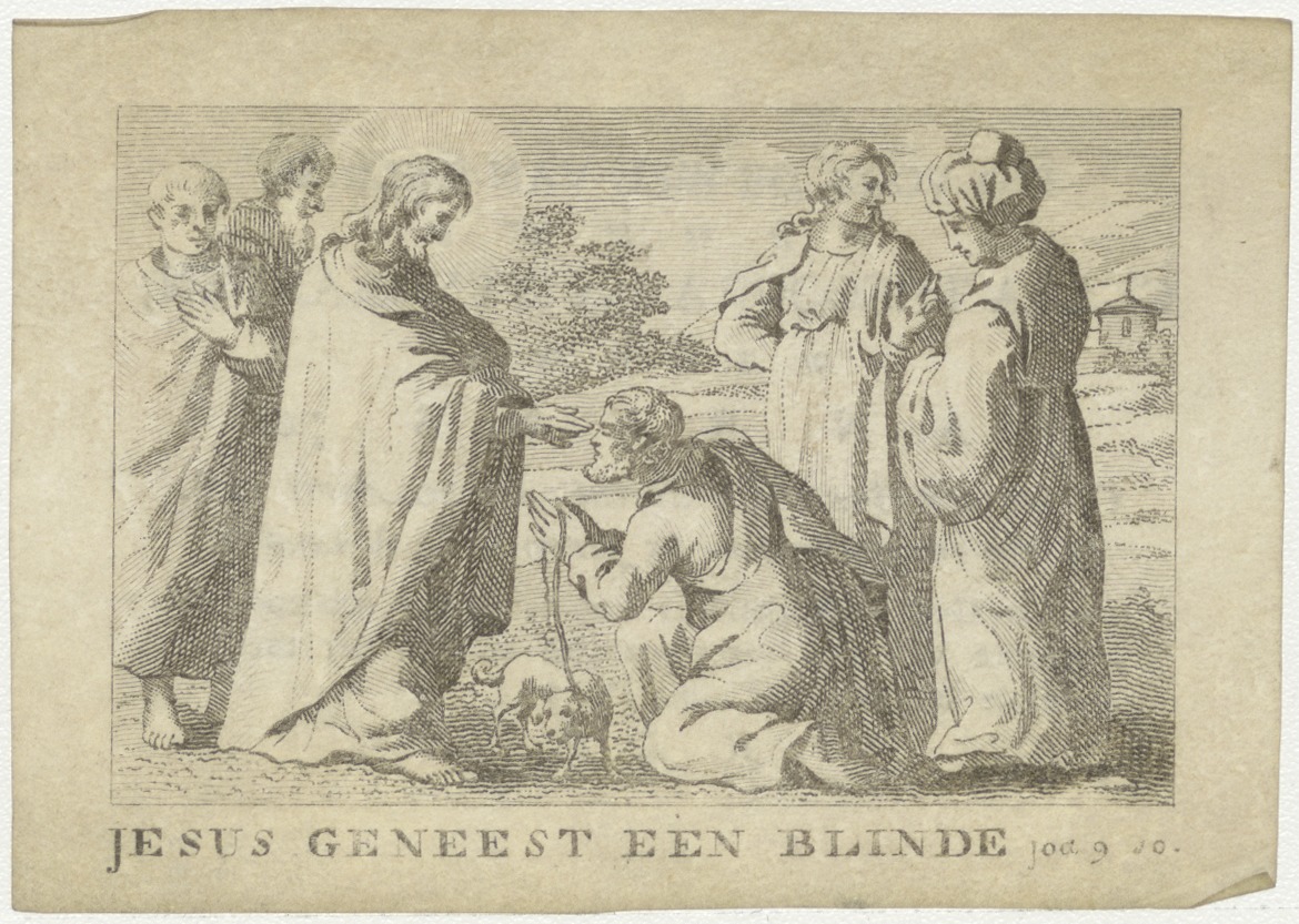 Wonder van Christus, Christus geneest een blinde (Joh. 9:10), kz. Bid voor ziel Rens-van Wijngaarden (+1808) Dordrecht