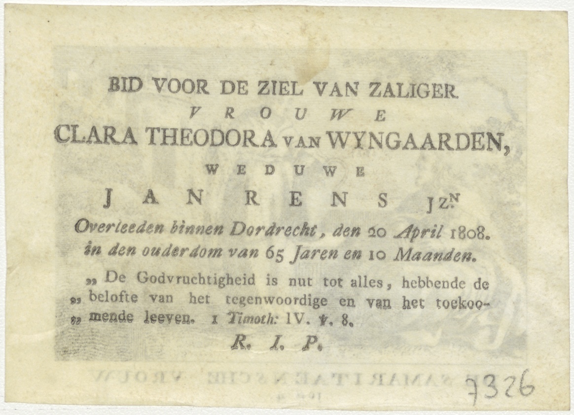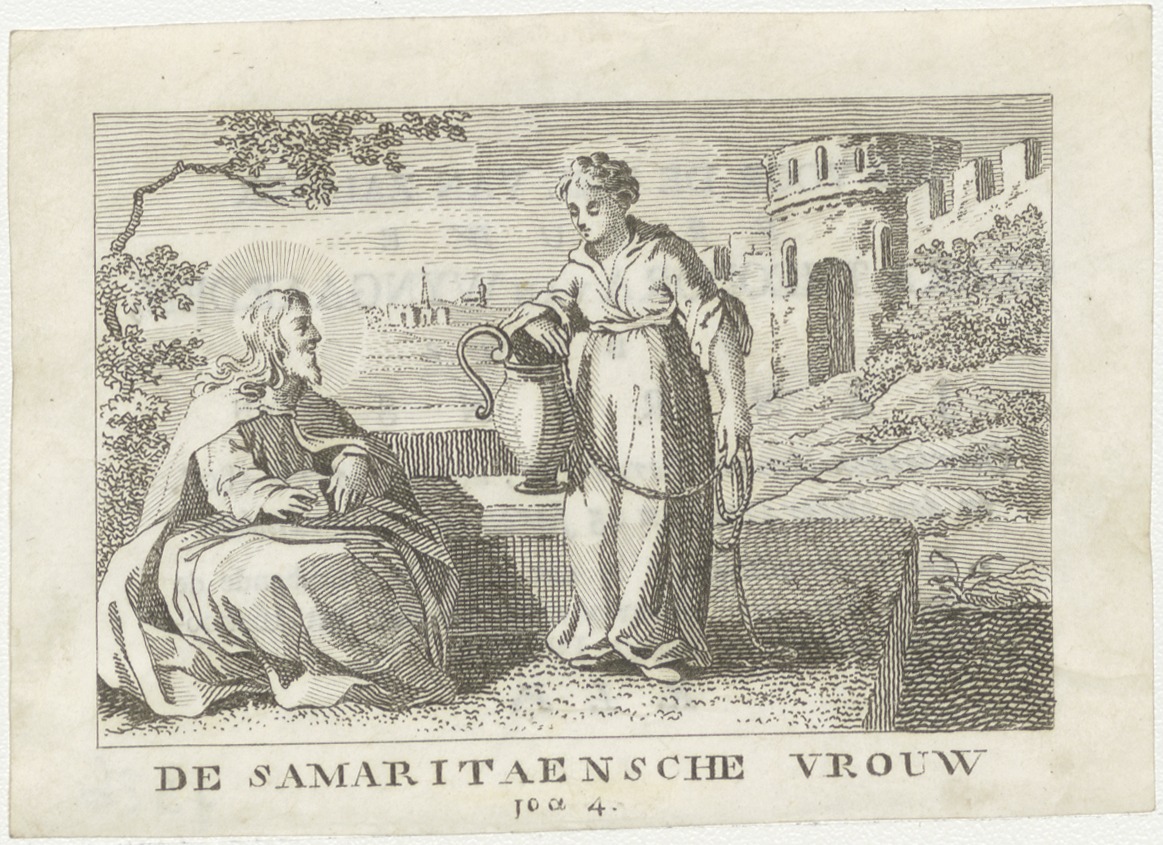 Christus ontmoet de Samaritaanse vrouw bij de bron (Joh. 4), kz. Bid voor ziel Rens-van Wijngaarden (+1808) Dordrecht