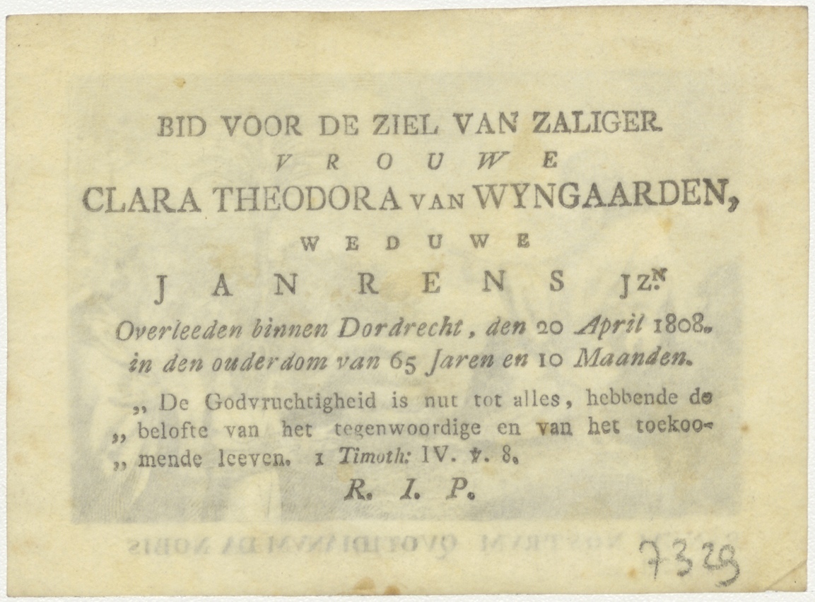 Wonder van Christus: de wonderbaarlijke broodvermenigvuldiging, kz. Bid voor ziel Rens-van Wijngaarden (+1808) Dordrecht