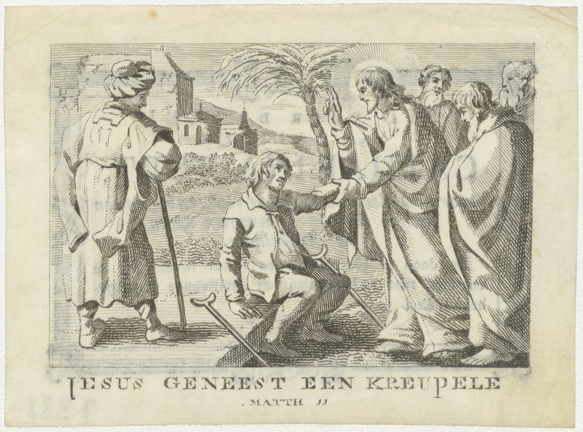 Wonder van Christus: genezing van de lamme (Math. 11), kz. Bid voor ziel Voet (+1808) Amsterdam