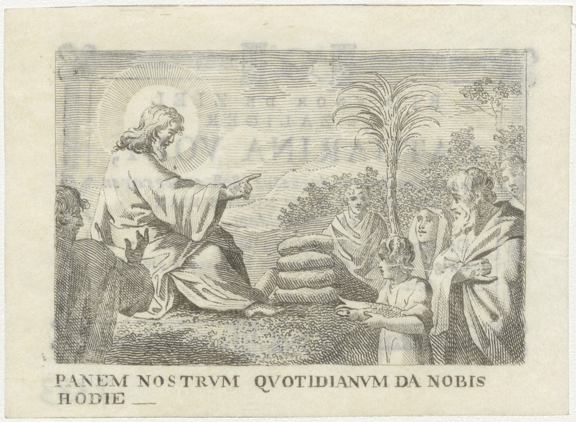 Wonder van Christus: de wonderbaarlijke broodvermenigvuldiging, kz. Bid voor ziel Voet (+1808) Amsterdam
