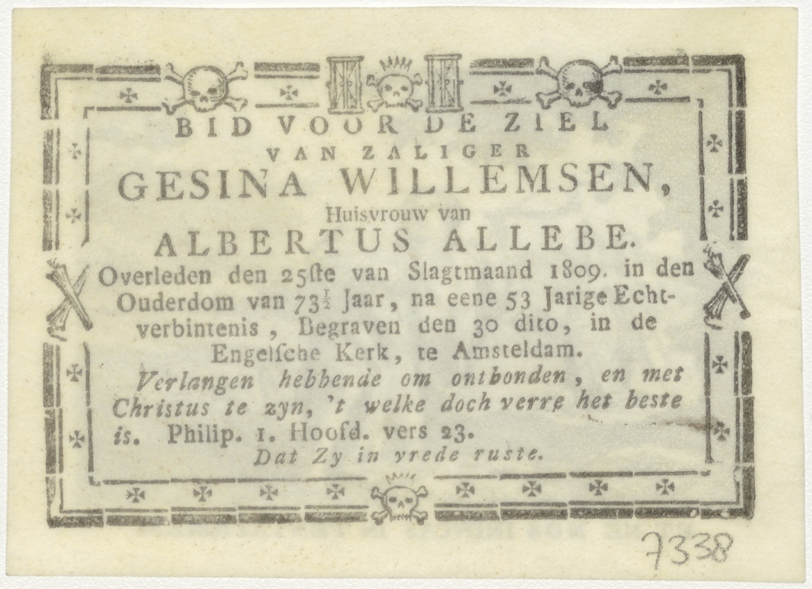 En lijdt ons niet in verzoeking..., Onze Vader, kz. Bid voor ziel Willemse-Allebé (+1809)
