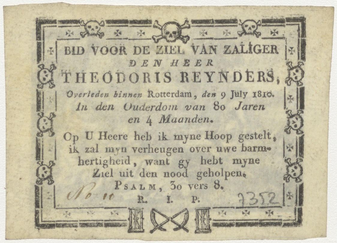 Tobias wordt blind, kz. Bid voor ziel Reynders (+1810) Rotterdam