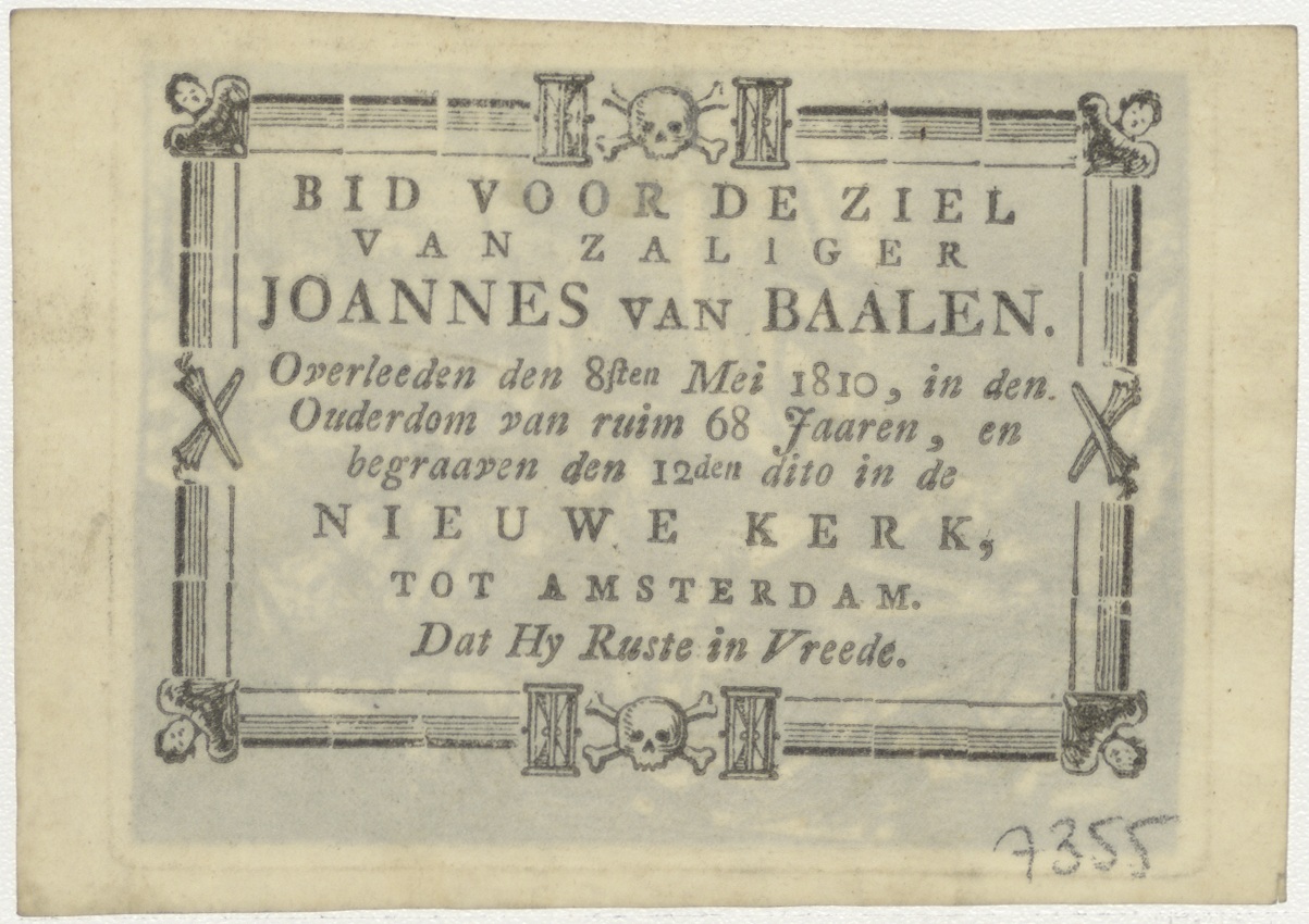 Verrijzenis van Christus, kz. Bid voor ziel Van Baalen (+1810) Amsterdam