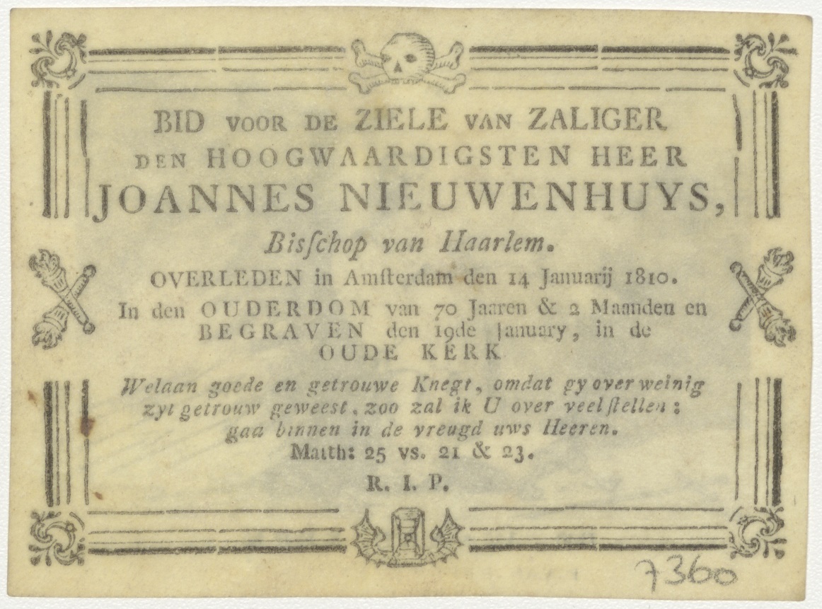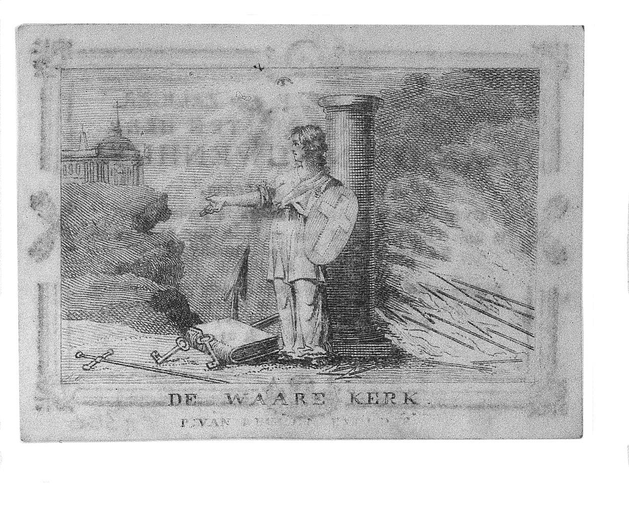 Allegorie op de kerk 'De Waare Kerk', kz. Religieus; bid voor ziel Joannes Nieuwenhuys (+1810) bisschop van Haarlem