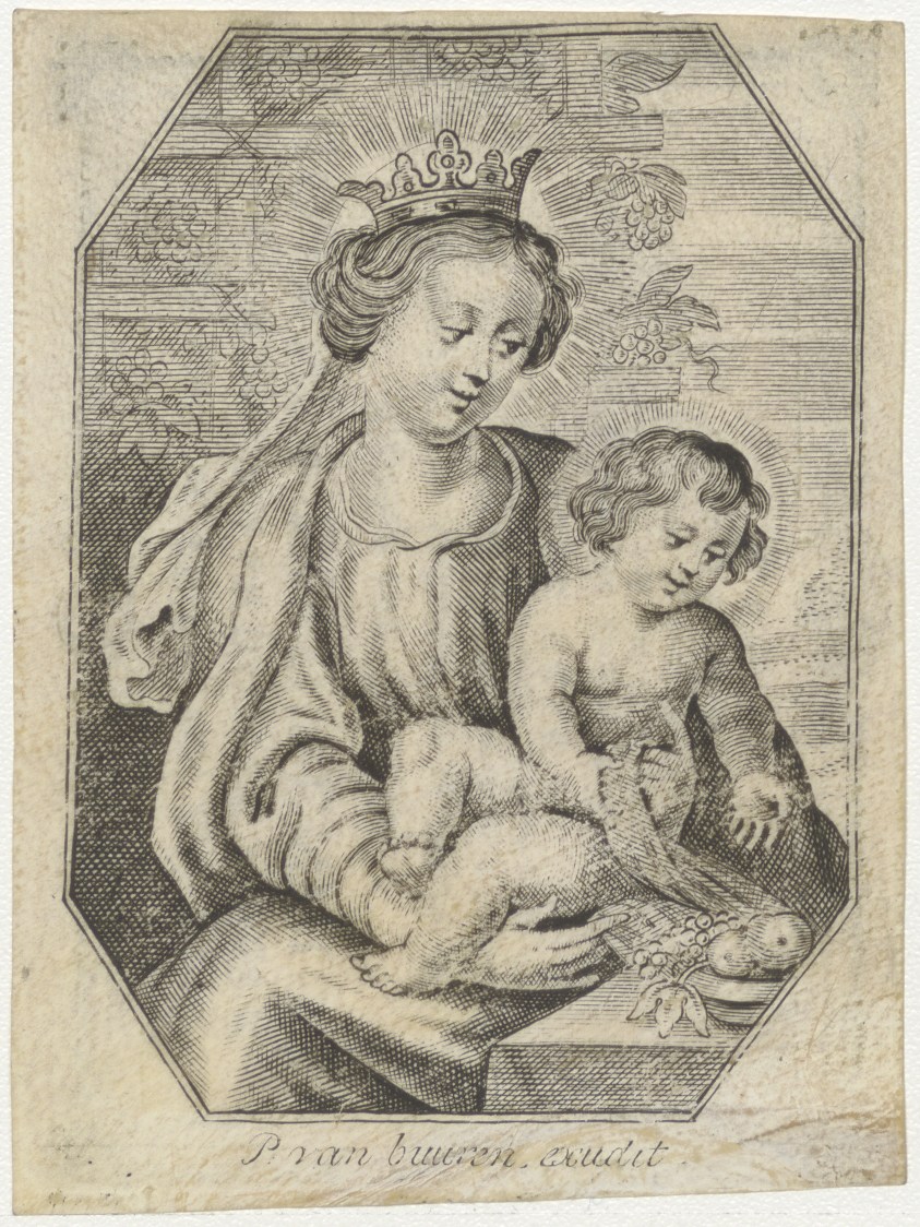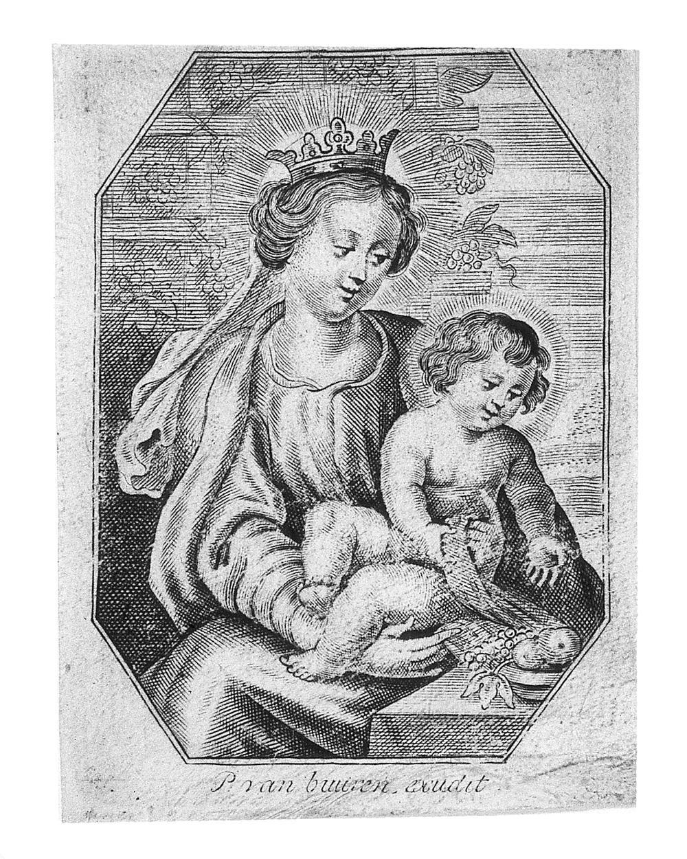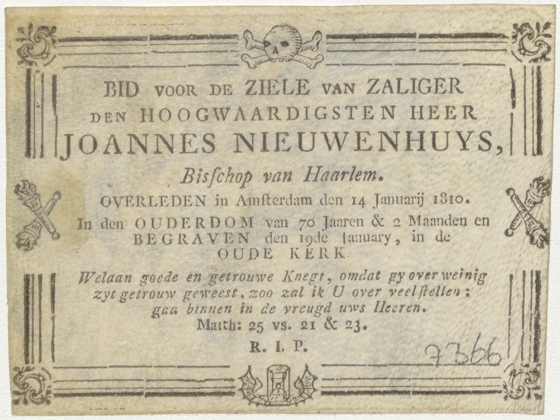 Maria met Christuskind, kz. Religieus; bid voor ziel Joannes Nieuwenhuys (+1810) bisschop van Haarlem