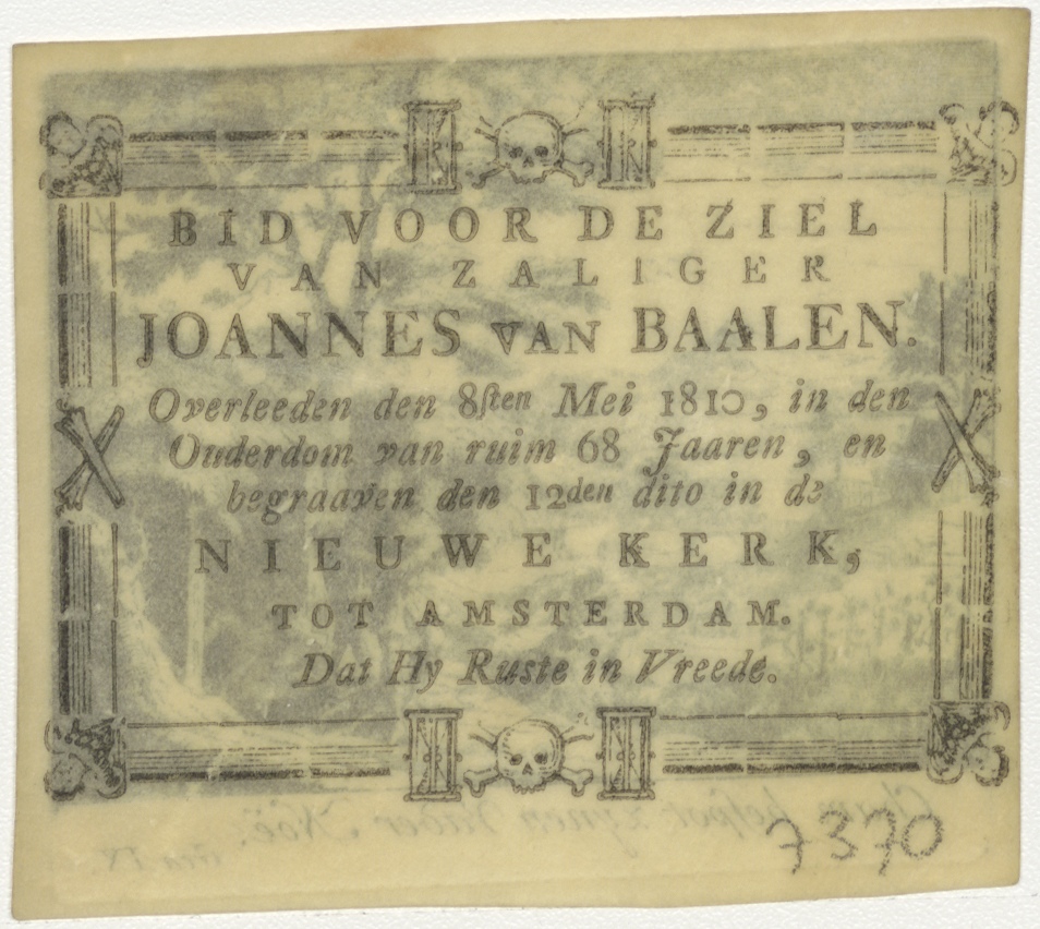 Cham bespot zijn vader Noach (Gen. 9), kz. Bid voor ziel van Baalen (+1810) Amsterdam