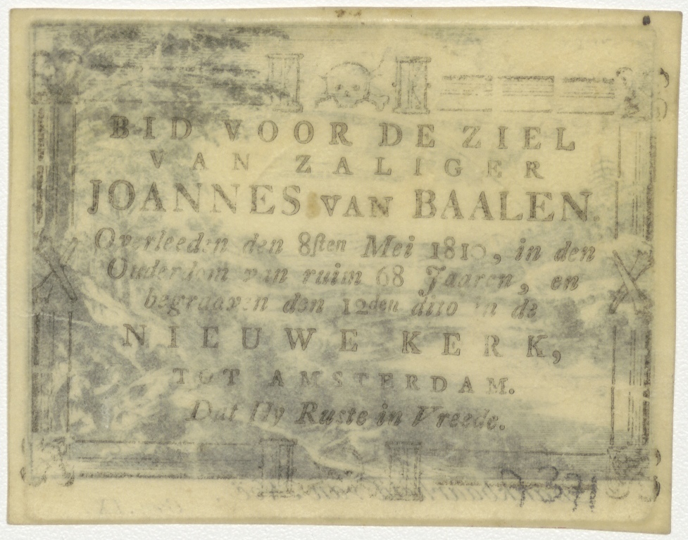 Dankbaarheid van Noach (Gen. 9), kz. Bid voor ziel van Baalen (+1810) Amsterdam