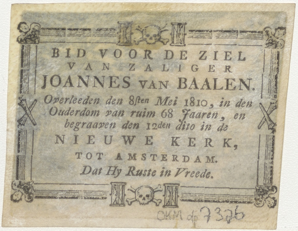 Gastvrijheid van Abraham (Gen. 13), kz. Bid voor ziel van Baalen (+1810) Amsterdam