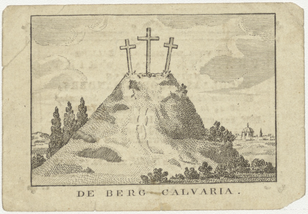 Calvarieberg met drie kruisen, kz. Bid voor ziel Van 't Riet-Sanders (+1812)