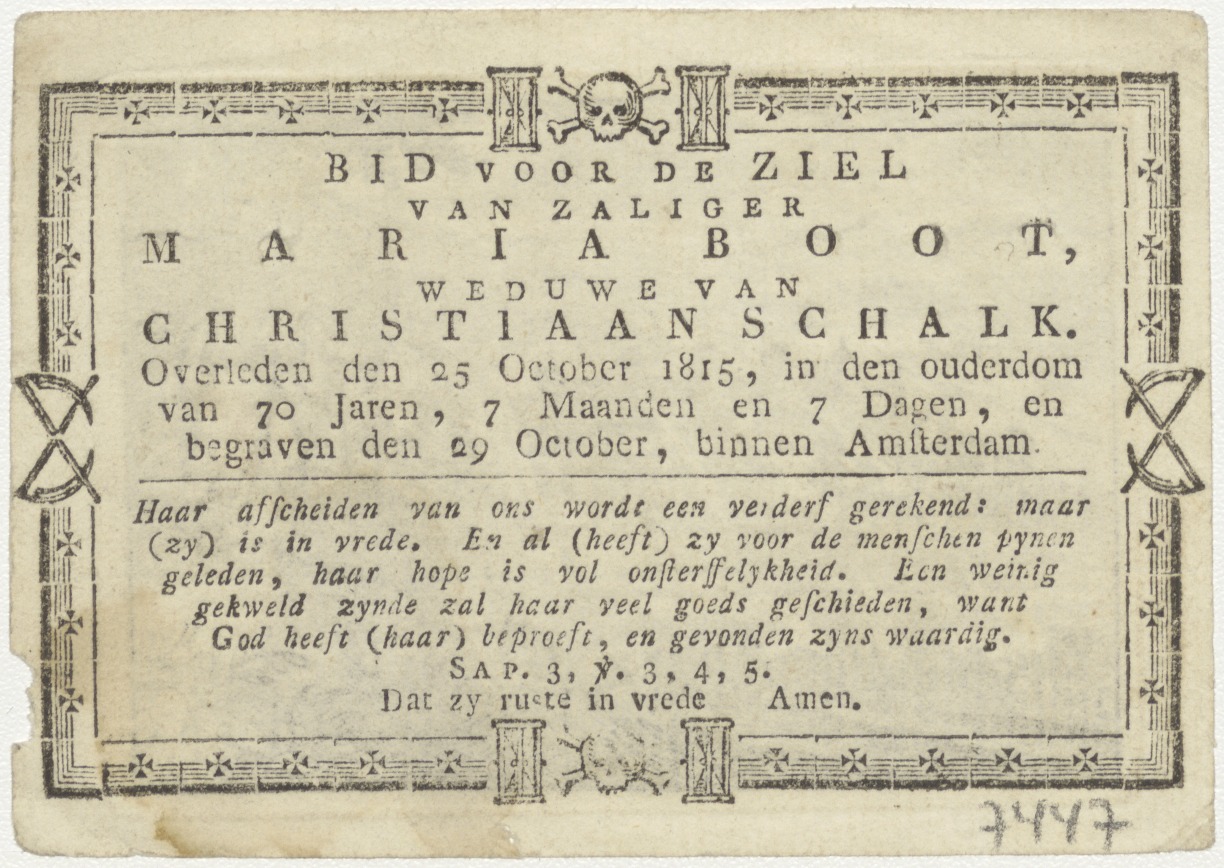 Man met engel voor het beloofde land, kz. Bid voor ziel Boot-Schalk (+1815) Amsterdam