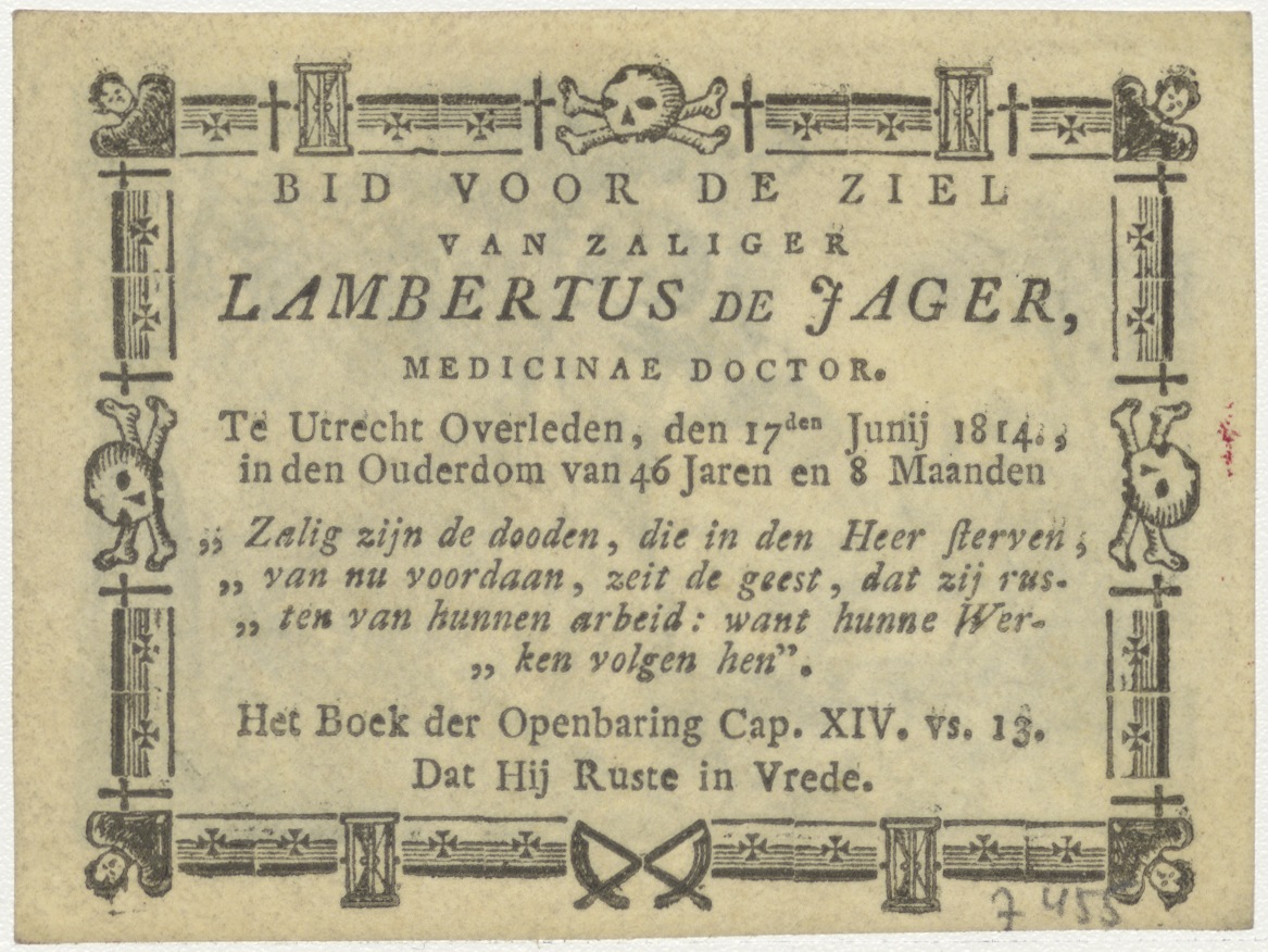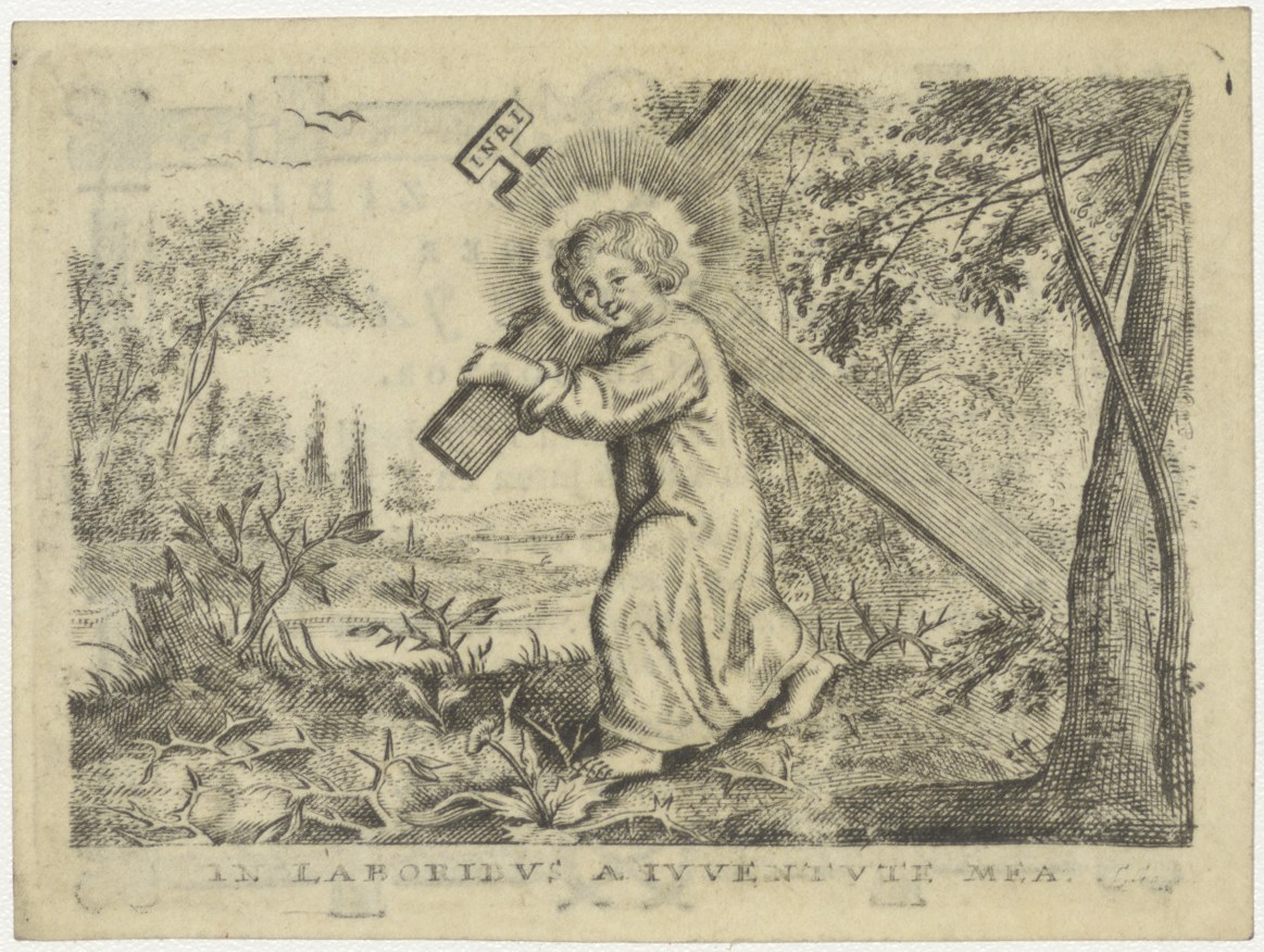 Christus als jongeling met kruis, kz. Bid voor ziel De Jager (+1814) Utrecht