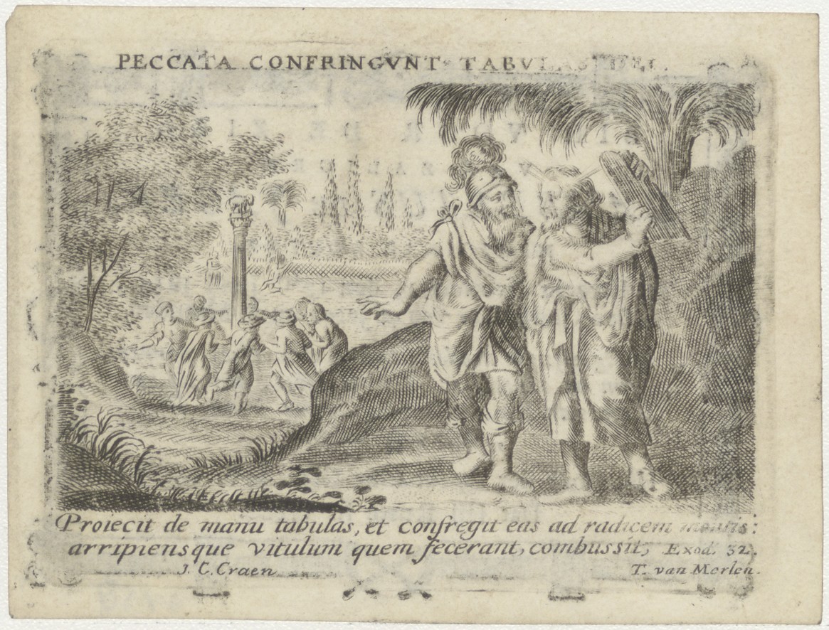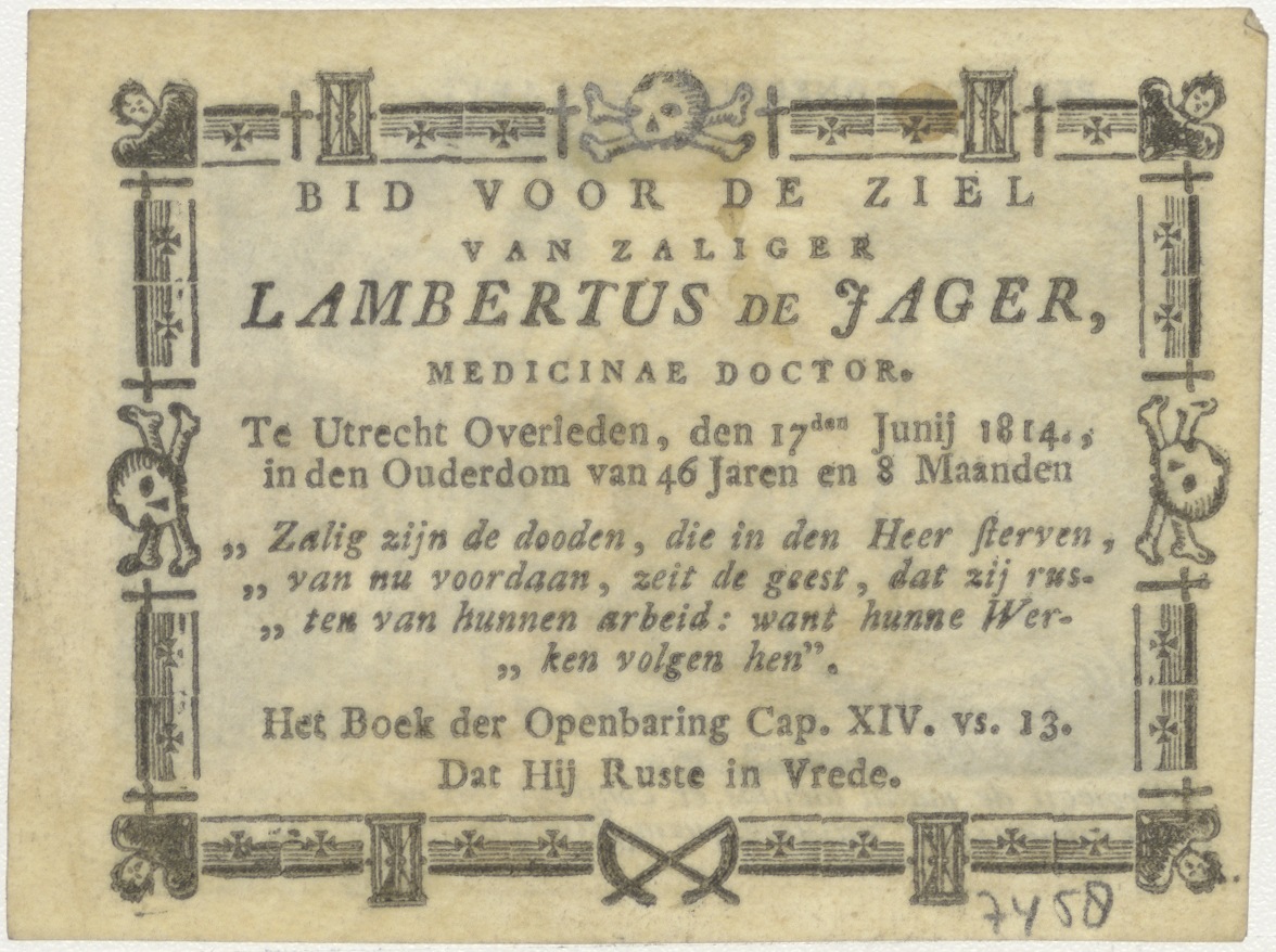 Dans rond het gouden kalf met Mozes, kz. Bid voor ziel De Jager (+1814) Utrecht