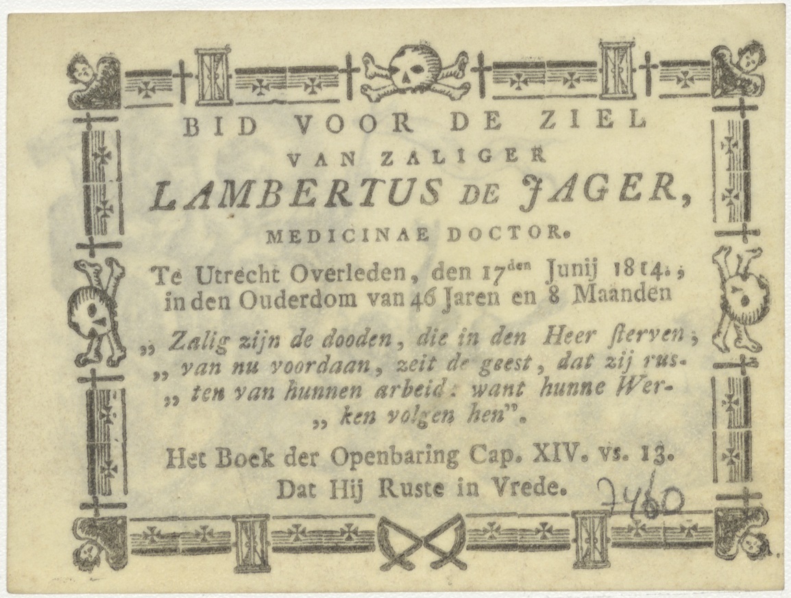 Christus op triomfwagen, kz. Bid voor ziel De Jager (+1814) Utrecht
