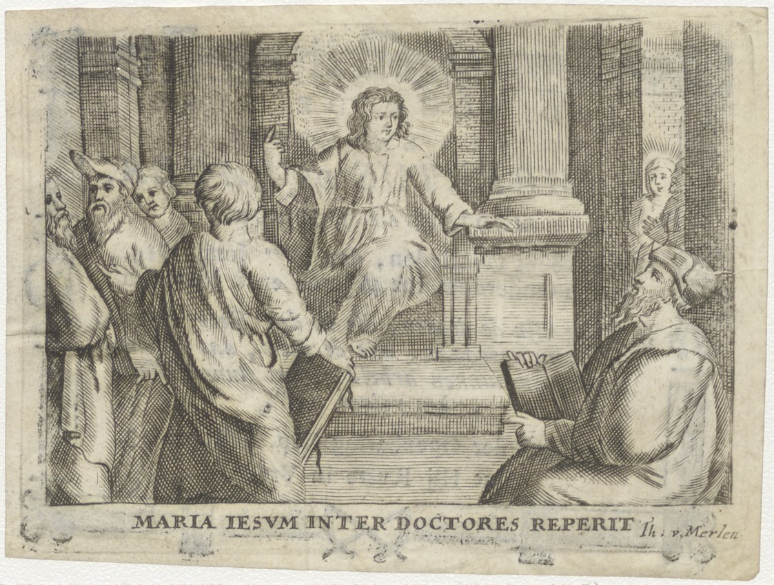 Christus als jongeling predikt in de tempel, kz. Bid voor ziel De Jager (+1814) Utrecht