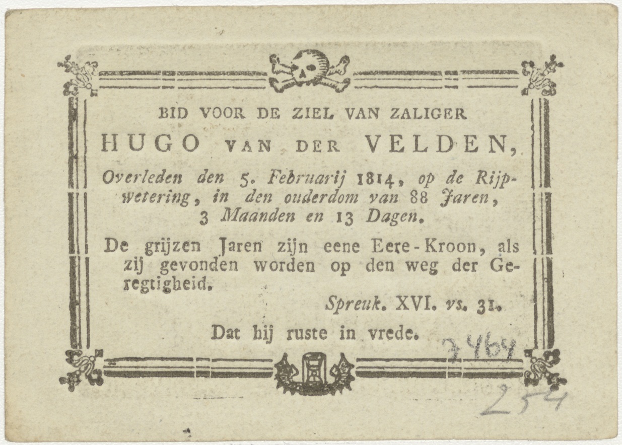 H. Mattheus, kz. Bid voor ziel Van der Velden (+1814) De Rijp