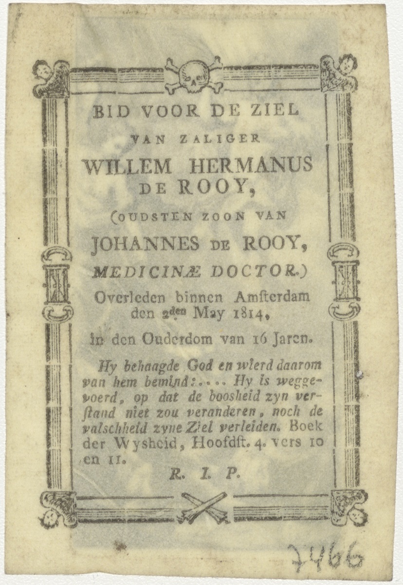 Verrijzenis van Christus, kz. Bid voor ziel Willem Hermanus de Rooy (+1814) Amsterdam