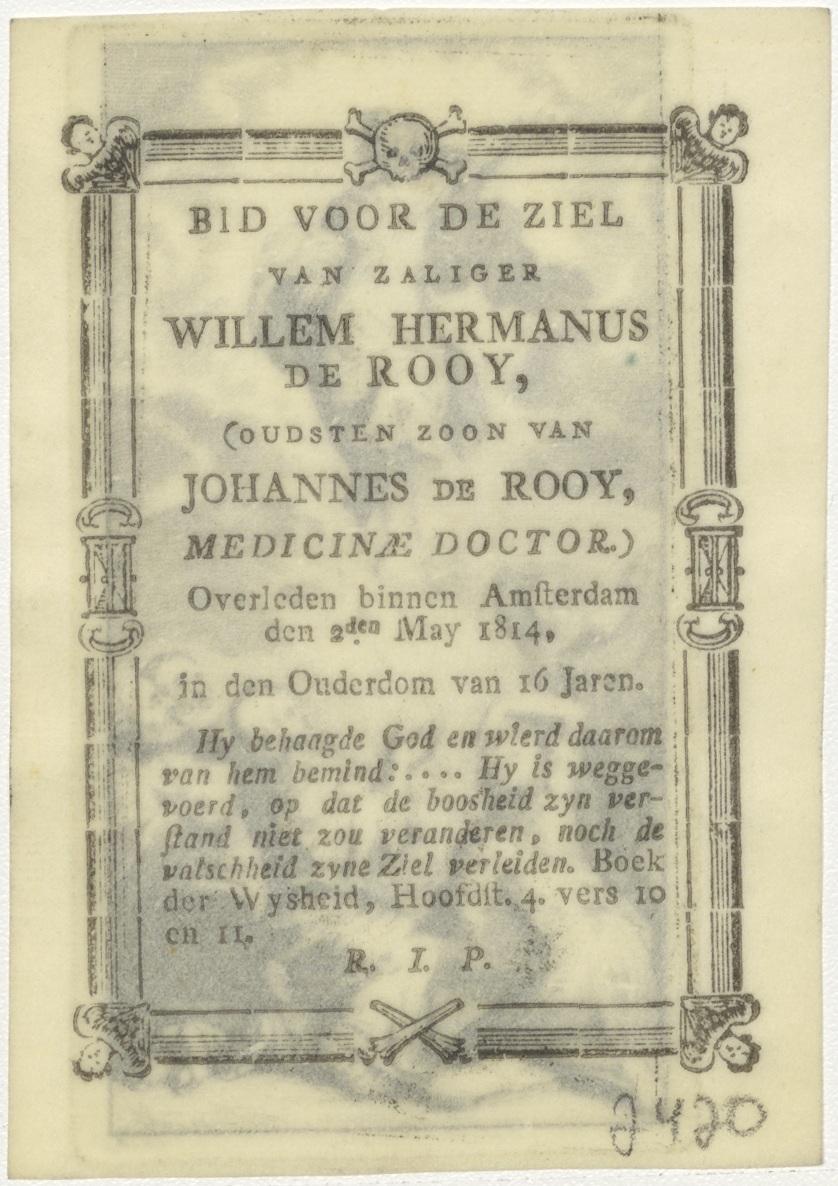 Verrijzenis van Christus, kz. Bid voor ziel Willem Hermanus de Rooy (+1814) Amsterdam