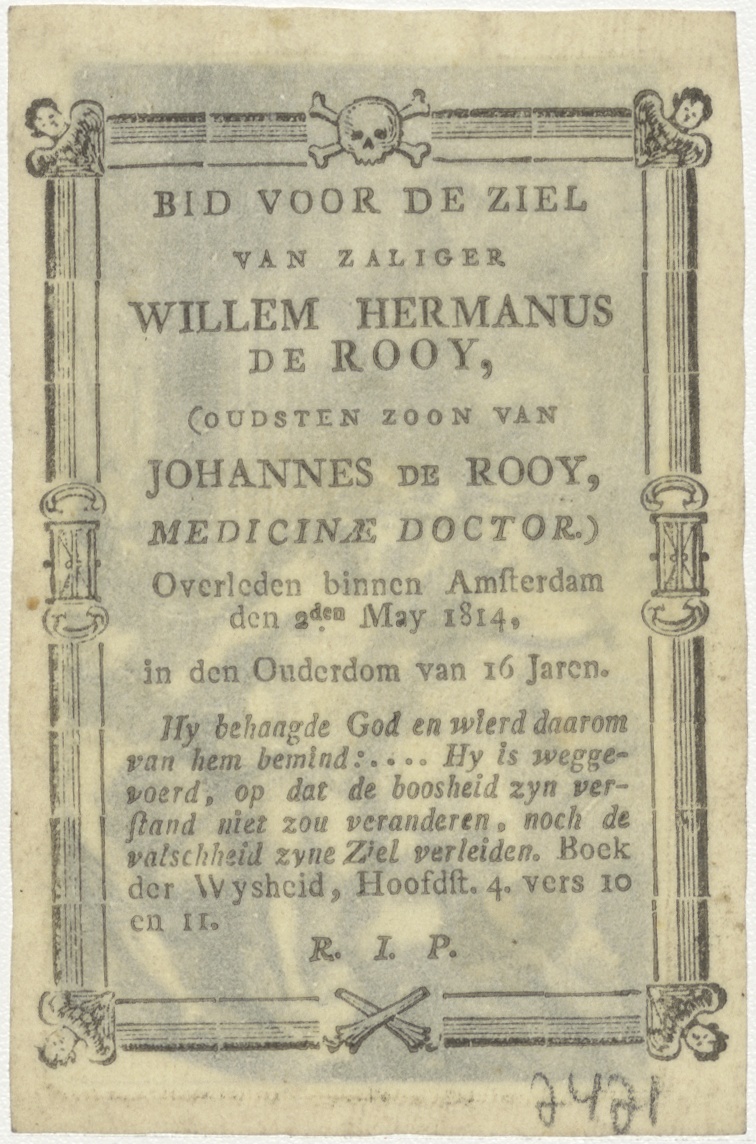 Geseling van Christus, kz. Bid voor ziel Willem Hermanus de Rooy (+1814) Amsterdam