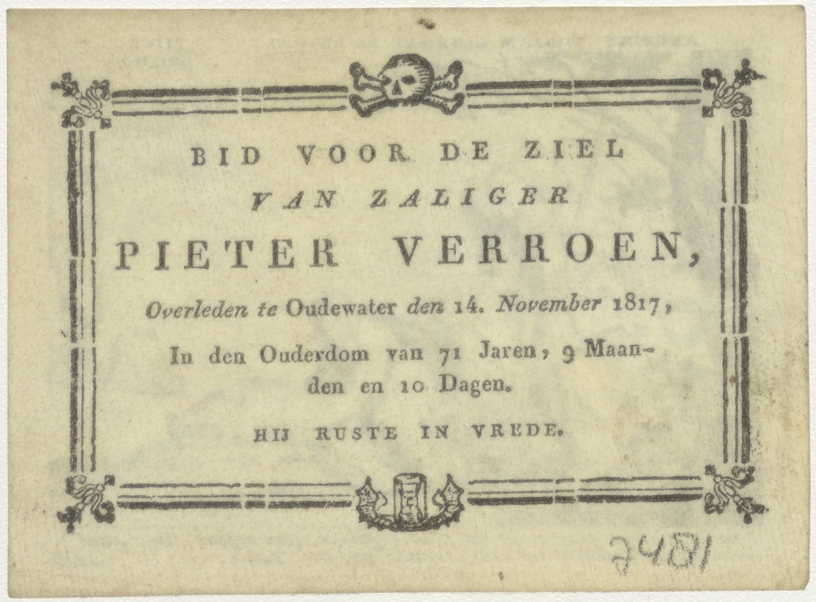 Tobias en de engel, kz. Bid voor ziel Verroen (+1817) Oudewater