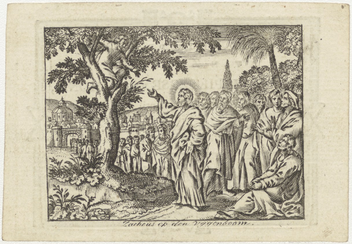 Christus met Zacheüs op den vijgeboom, kz. Bid voor ziel Pieterse van Egmond (+1817) Rijnsaterwoude