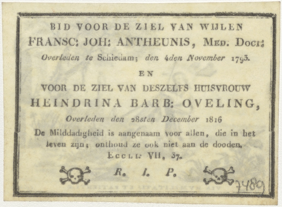 Christus als jongeling met Arma Christi, kz. Bid voor ziel Antheunis-Oveling (+1816) Schiedam