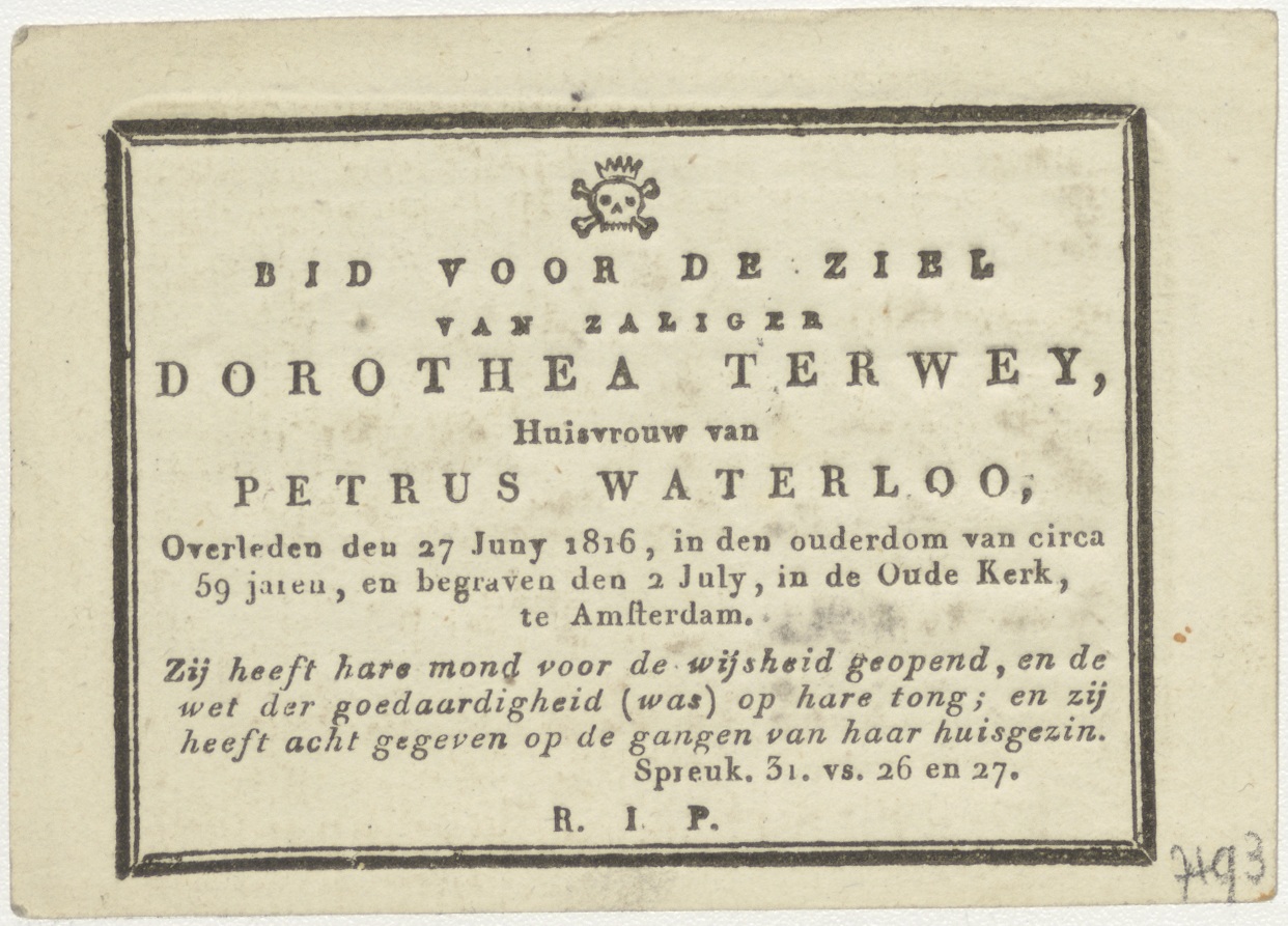 H. Marcus, kz. Bid voor ziel Dorothea Terwey-Waterloo (+1816) Amsterdam